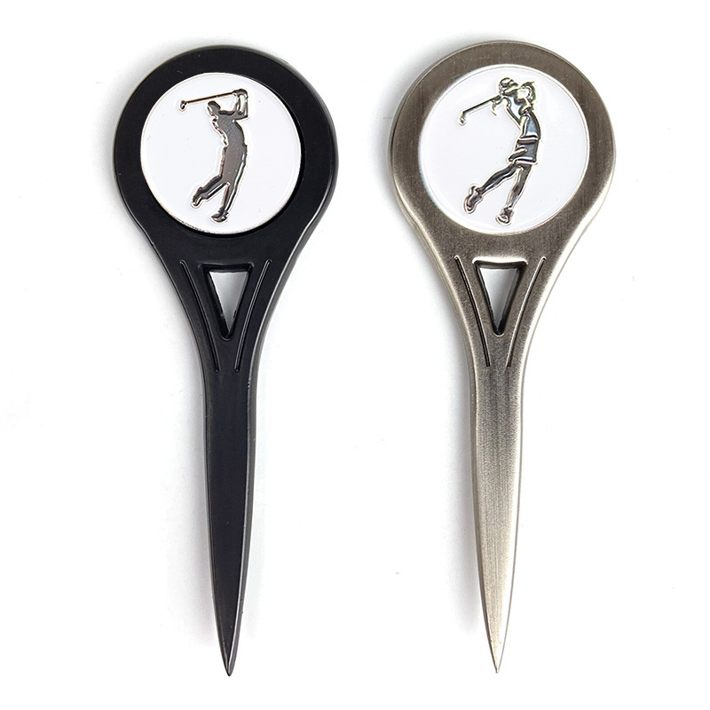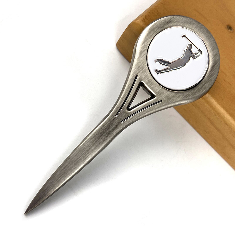 This 36g (100mm) divot tool (black/silver finishes) features detailed golf player designs—sleek, durable, and functional for green repairs. Perfect for golfers who want gear that combines sporty style with on-course practicality, adding a personalized touch to their round.