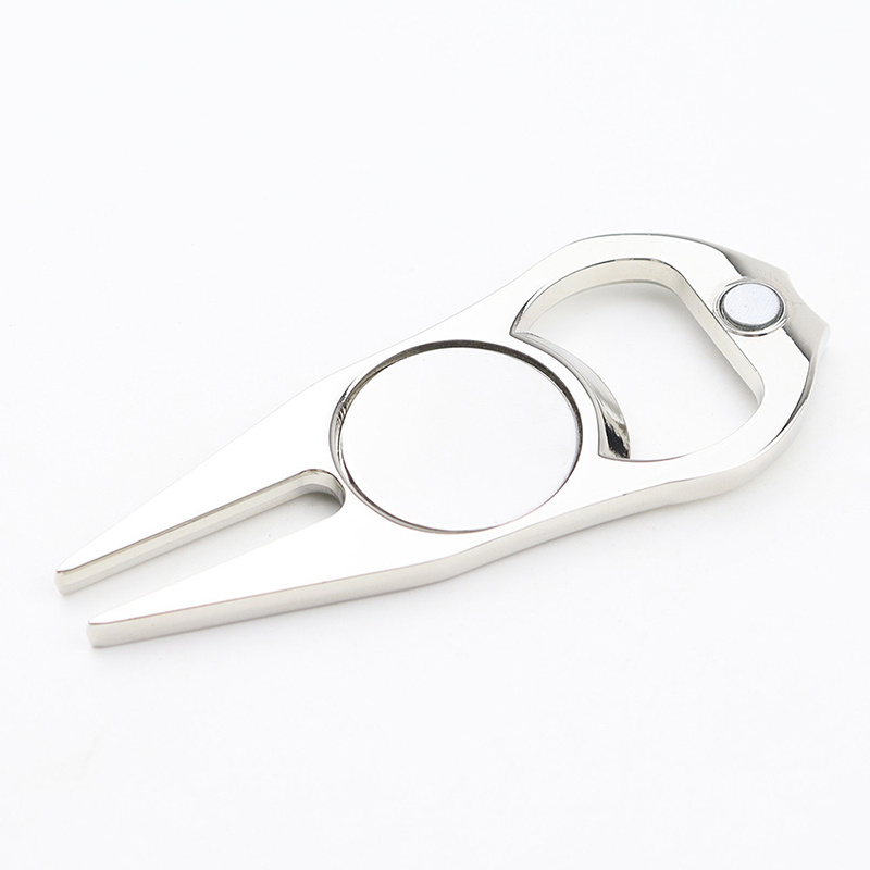 This sturdy metal tool fixes course greens, opens bottles, and includes a removable ball marker—all in one. Adorned with a female golfer design, it’s compact, practical, and stylish, ideal for on-course convenience or gifting to golf lovers.