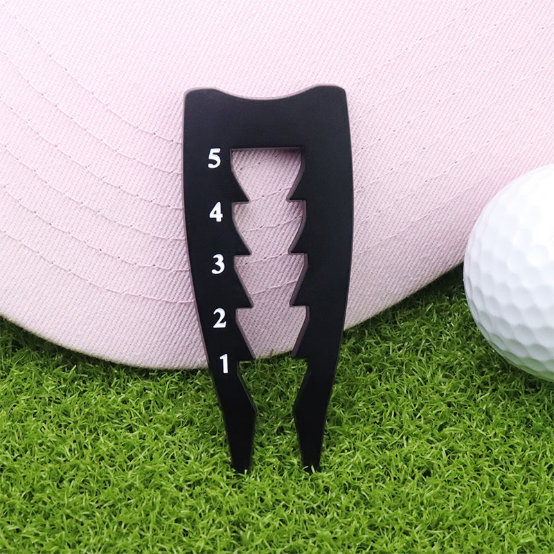 This 48g (74mm) black, blade-shaped tool fixes green divots and adjusts golf tee heights (1-5 levels) via its notched design. It’s compact, functional, and streamlines setup—ideal for golfers seeking precision and convenience on the course.