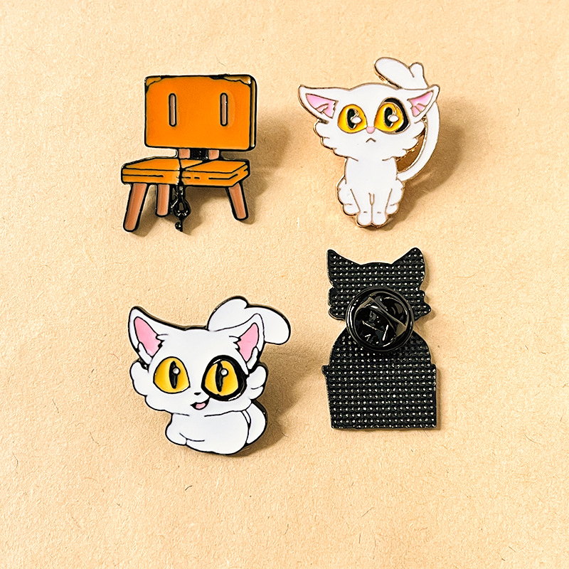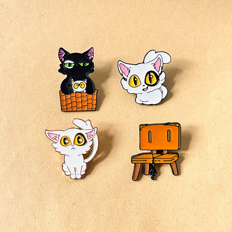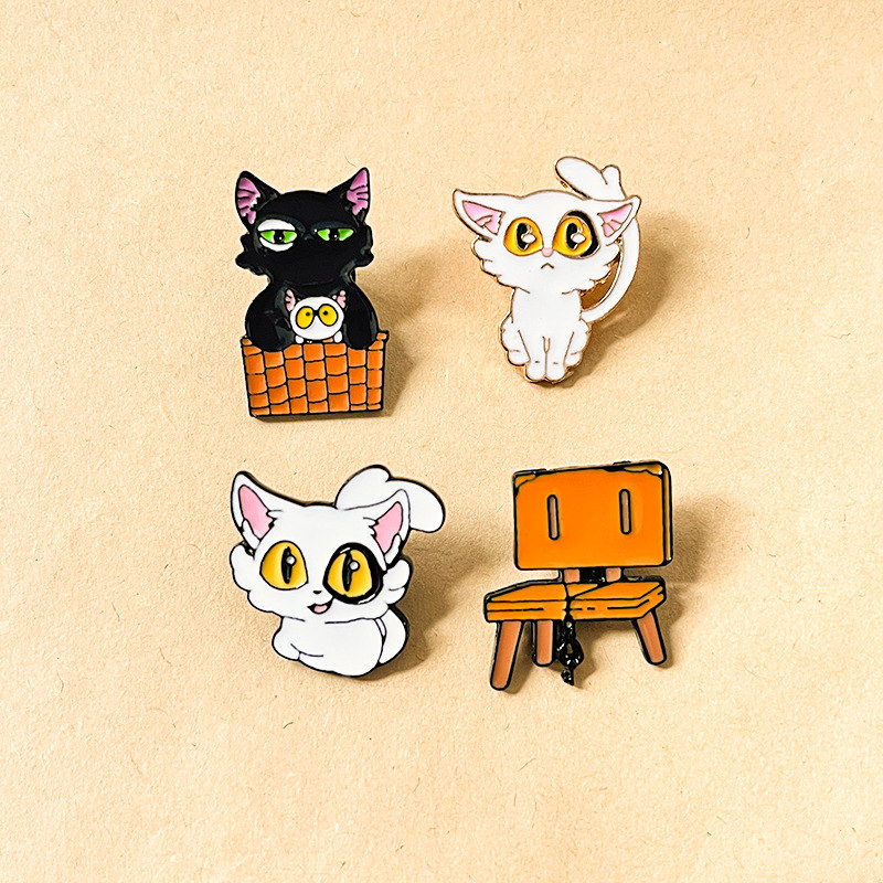 This pin set has 3 cute anime cats (including a parent-kitten pair) plus a quirky chair—playful, charming design. For anime lovers, it adds whimsy to bags/jackets, ideal for daily styling or infusing outfits with fun, vivid character-themed personality.