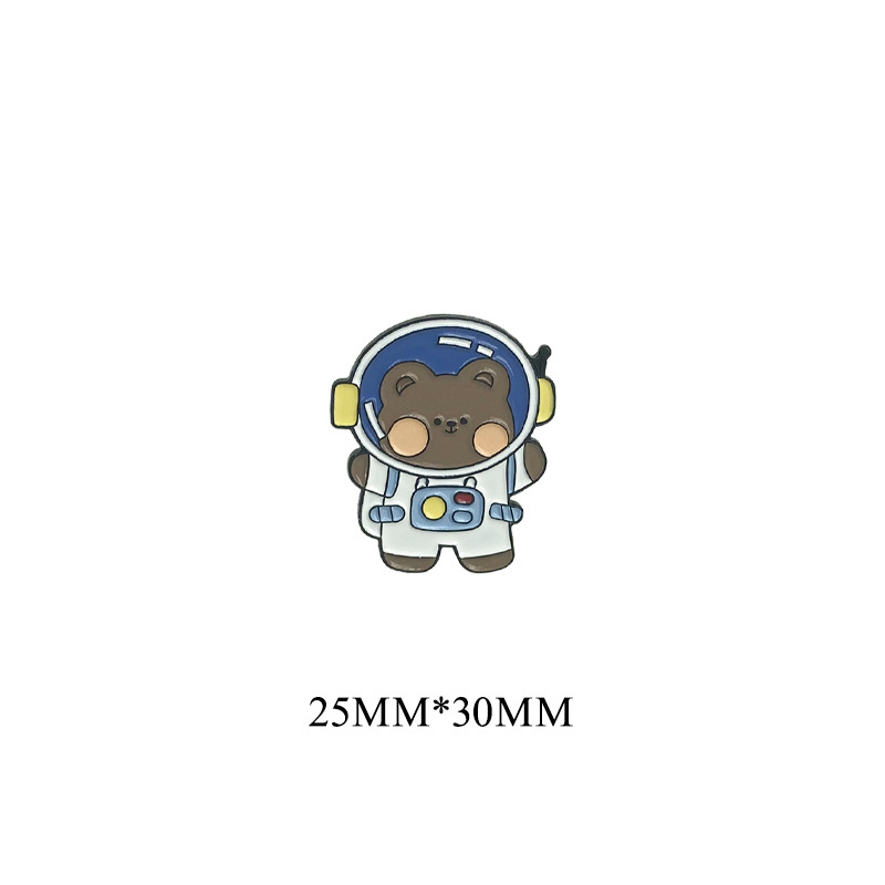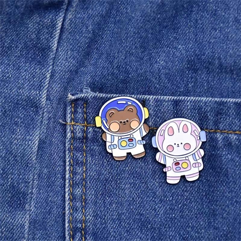 2 cute space-themed pins (bear + rabbit in astronaut suits) — glossy enamel with crisp details, vibrant & durable. Perfect for adding whimsical cosmic flair to bags/jackets; ideal for daily wear or playful collectible decor.