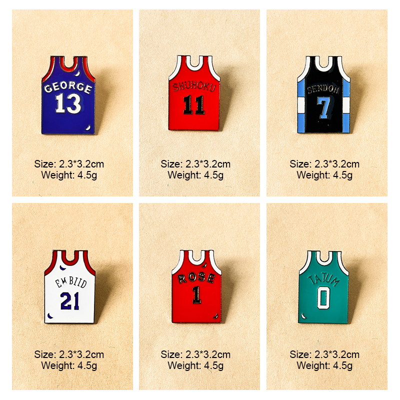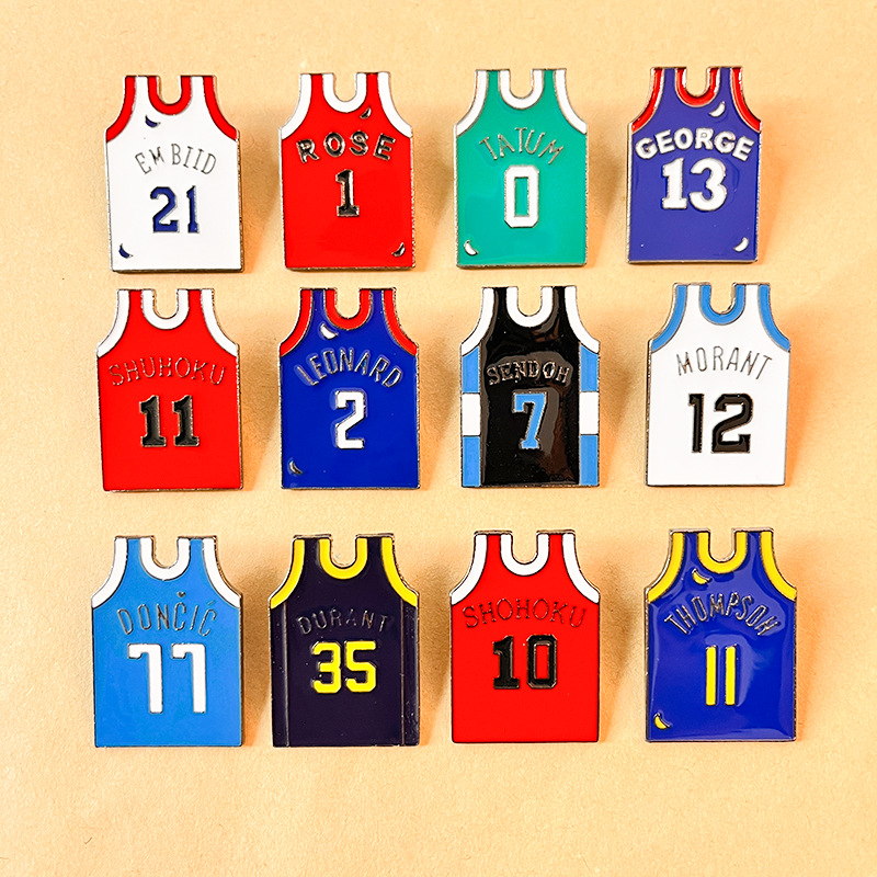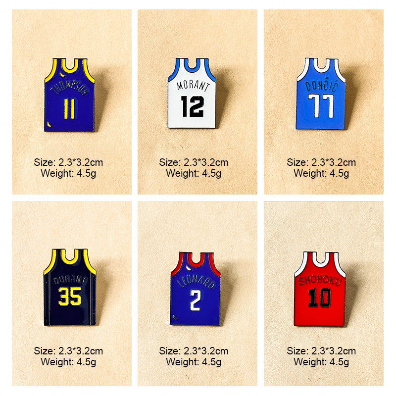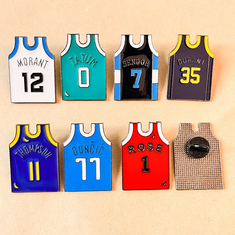 Sports Fan AdornmentsSelling Points: These vivid enamel pins feature iconic NBA/Anime jersey designs (Morant, Durant, Sakuragi, etc.) with player names & numbers. Polished, team-colored styles add sporty flair to bags/jackets—ideal for basketball fans as collectible, fandom-focused keepsakes.