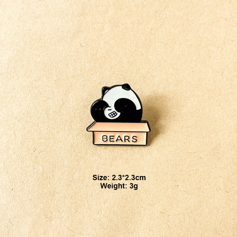 3 charming pins (white bear, red bear, panda in "BEARS" boxes) — minimalist design, playful expressions. Perfect for adding cozy flair to bags/jackets; ideal for bear lovers’ daily wear or cute character collectibles.