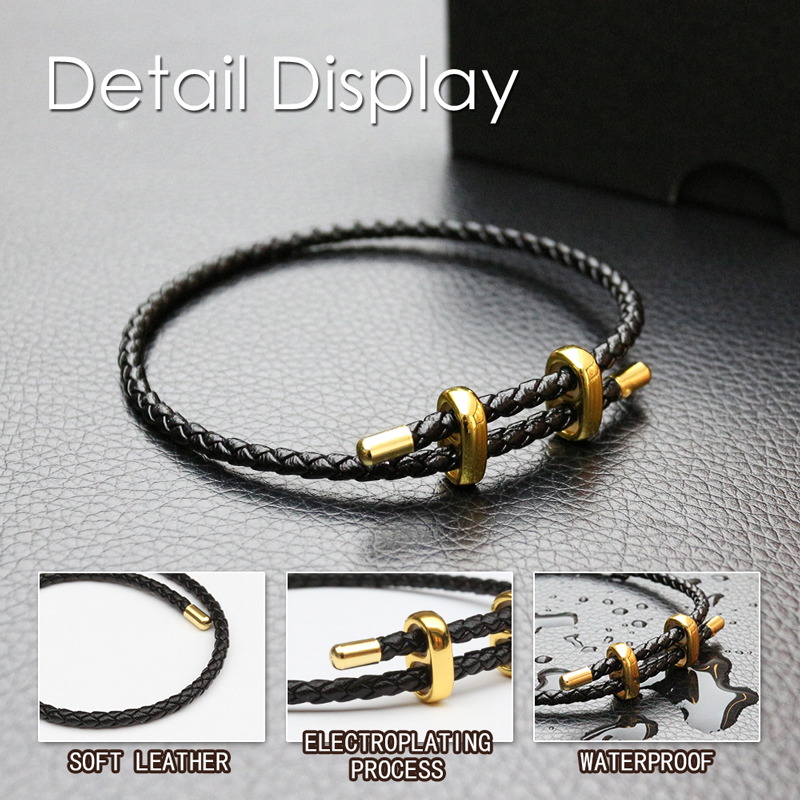 This chic braided leather bracelet features a sleek gold-tone magnetic clasp for easy wear. Available in pink, teal, red, and black, its slim, textured design suits daily outfits or casual occasions—blending comfort, versatility, and understated elegance for effortless accessorizing.