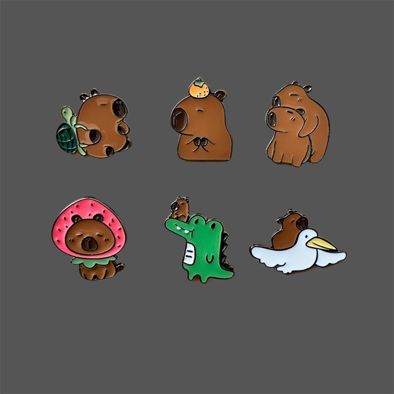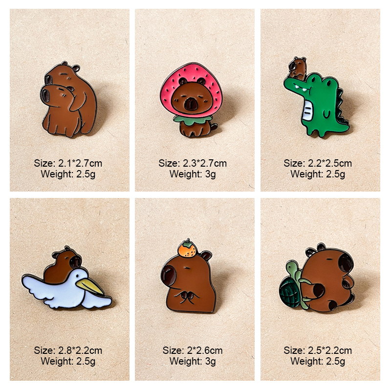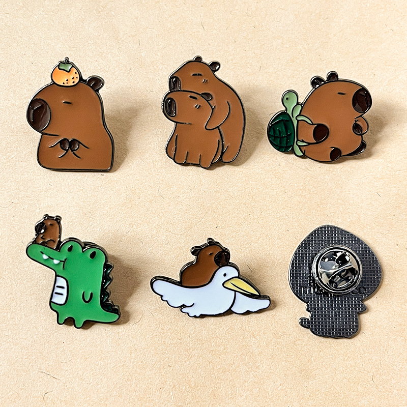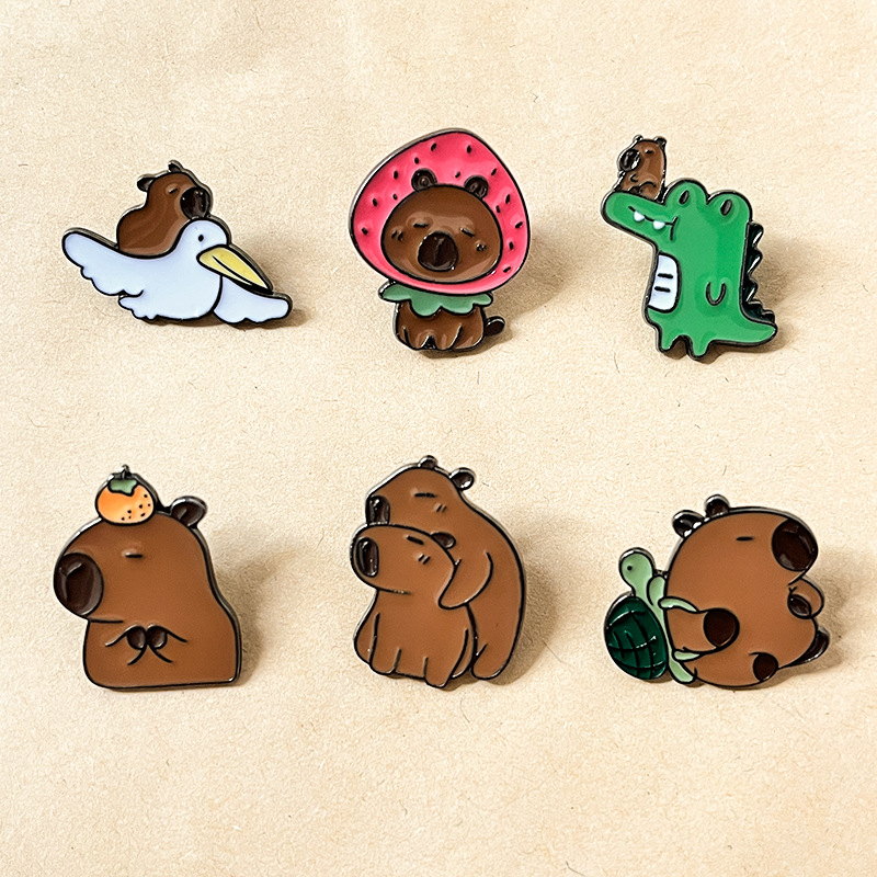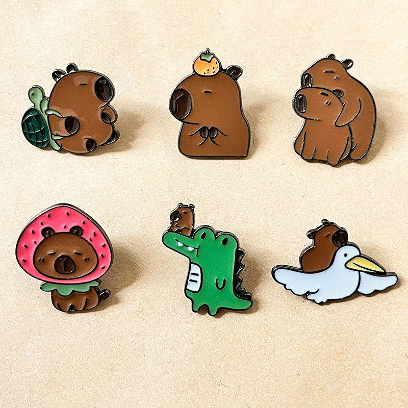6 cute capybara designs (with turtle, fruit, crocodile, etc.)—charming, playful flair. Ideal for capybara/animal lovers to add cozy style to bags/jackets; great for daily wear or whimsical decor.