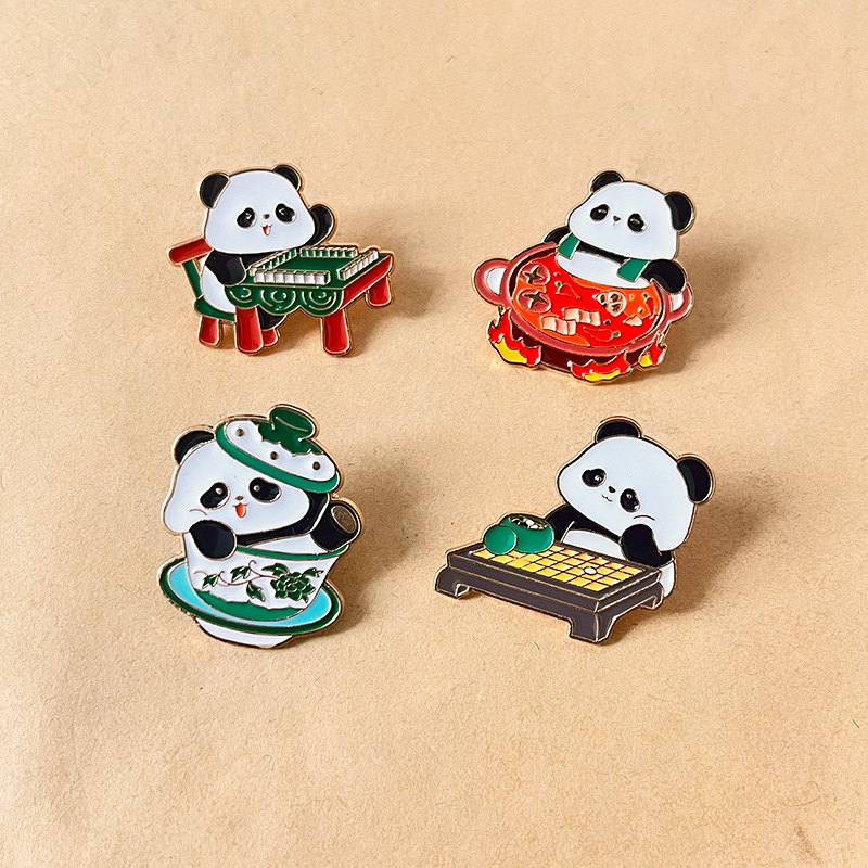 These 4 adorable panda pins showcase classic Chinese activities (mahjong, hot pot, etc.), mixing cultural charm with cute flair. Ideal for panda/culture lovers to add unique style to bags/jackets—great for daily wear or infusing spaces with playful cultural decor.