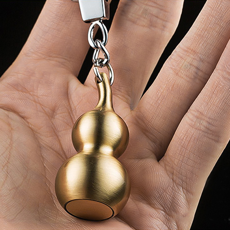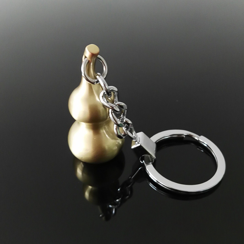 This keychain features a brass gourd (hulu) design, a symbol of good luck in Chinese culture, paired with a metal chain and ring. Its traditional yet sleek style blends cultural symbolism with practicality, appealing to those who appreciate auspicious, minimalist accessories.