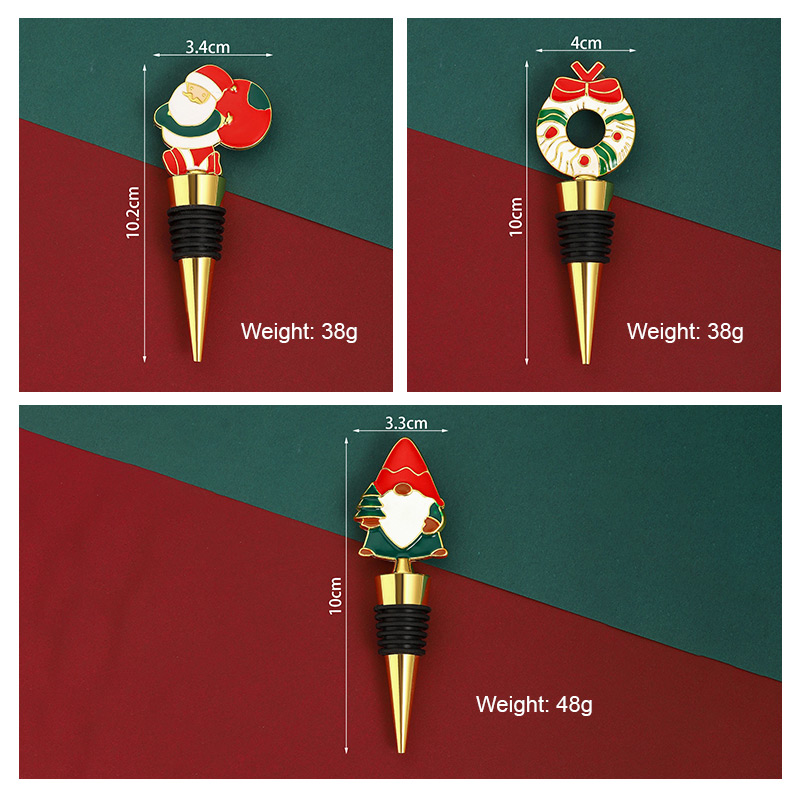 This set features festive shapes (Santa, wreath, gnome) in classic red-green holiday hues with gold accents. Each 38-48g stopper uses a silicone grip to seal wine tightly, doubling as Christmas decor—ideal for holiday parties, gifting, or adding seasonal charm to wine collections.