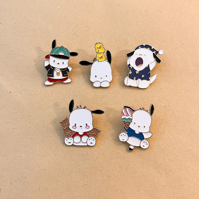 These vibrant enamel pins feature Cinnamoroll in playful looks—streetwear, duck companion, sleepy, snacking, ice cream. Cute, detailed designs blend Sanrio charm with whimsy, perfect for adding sweet flair to gear as beloved fandom collectibles.