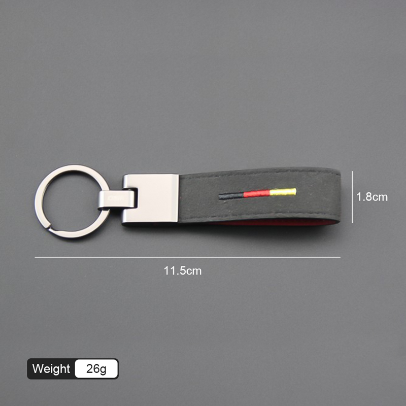 These leather metal keychains feature black leather with colorful stitching, sturdy metal key rings, and premium craftsmanship. Stylish, durable, and ideal as gifts for car enthusiasts, perfect for gifting on various occasions with their unique designs.