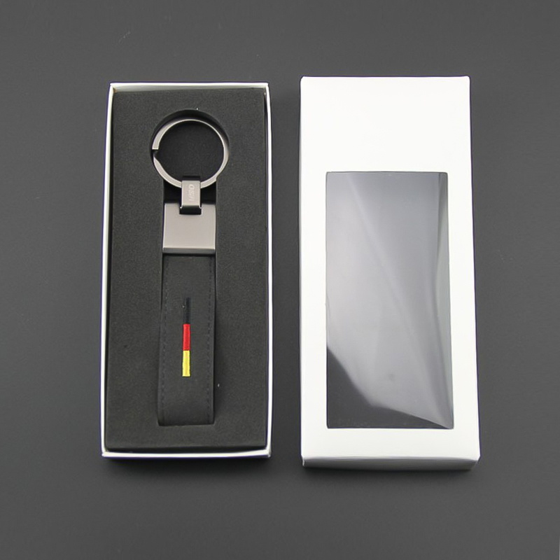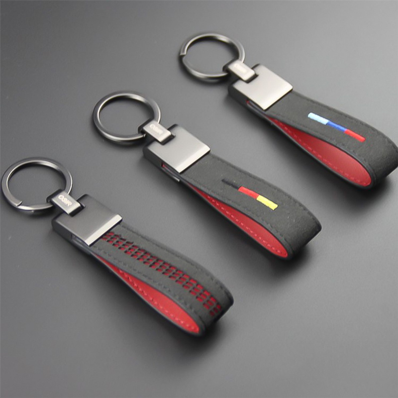 These leather metal keychains feature black leather with vibrant color stitching (red, blue, yellow), sturdy metal key rings, and exquisite craftsmanship. Stylish, durable, and ideal as gifts for car lovers, perfect for gifting on birthdays, holidays, or as a premium accessory for key organization.