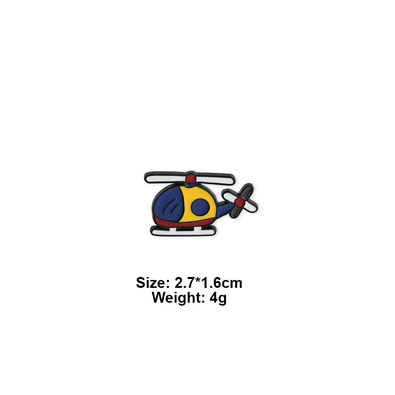Features a vibrant blue-yellow helicopter with bold accents—whimsical, retro aviation charm. Perfect for plane/vehicle fans to add fun flair to bags/jackets, ideal for daily styling or playful transport-themed decor.