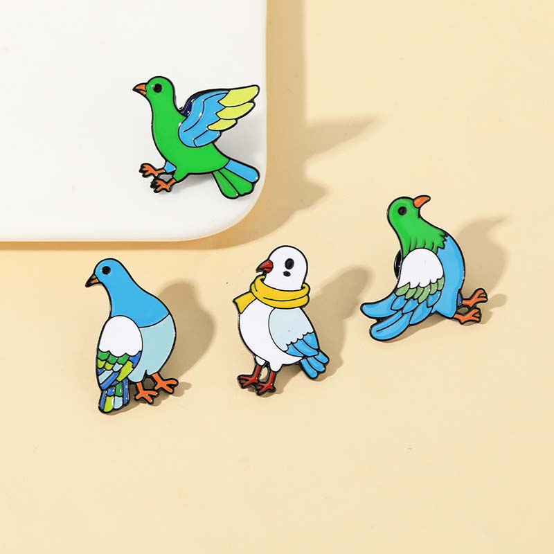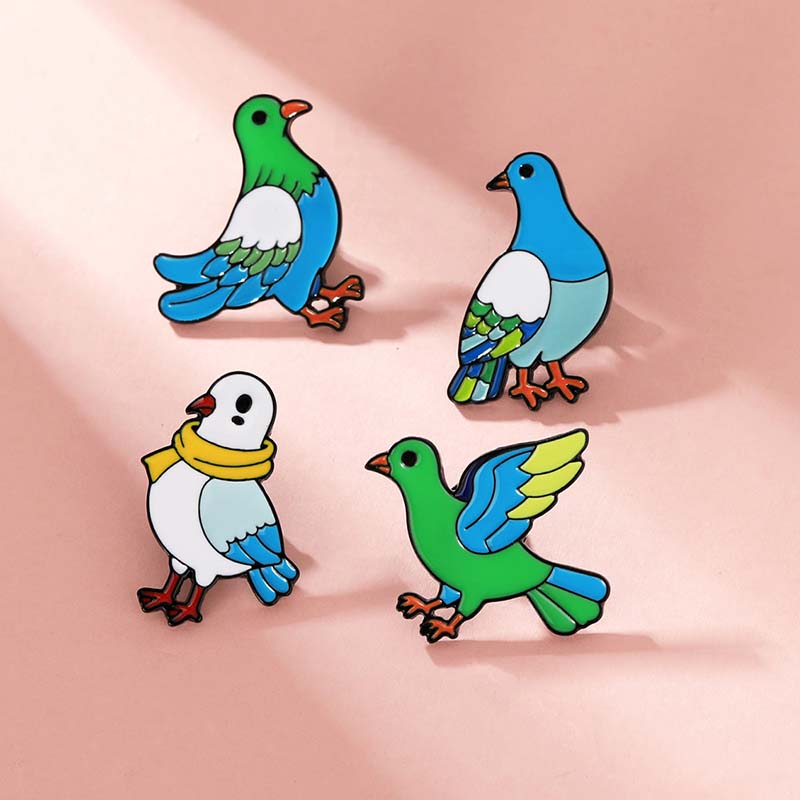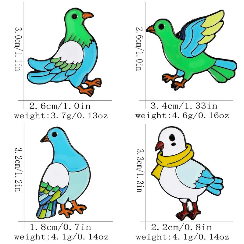 Features 4 vibrant designs (scaled, scarf-wearing, wing-spread pigeons)—cheerful, whimsical vibes. Perfect for bird lovers to add cute flair to bags/jackets, ideal for daily styling or charming bird-themed accessory decor.