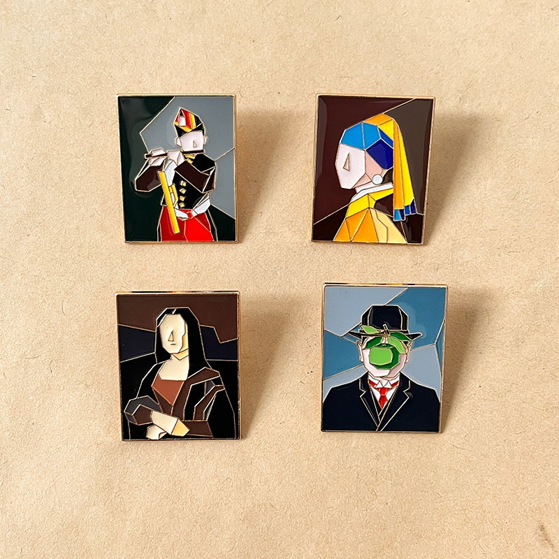 These art pins have sleek square silhouettes (framed like mini canvases) with vivid cubist enamel detailing. They adorn blazer lapels, tote bags, or art journal covers—perfect for art enthusiasts to showcase their taste, adding sophisticated, gallery-worthy charm to daily outfits or creative accessories.