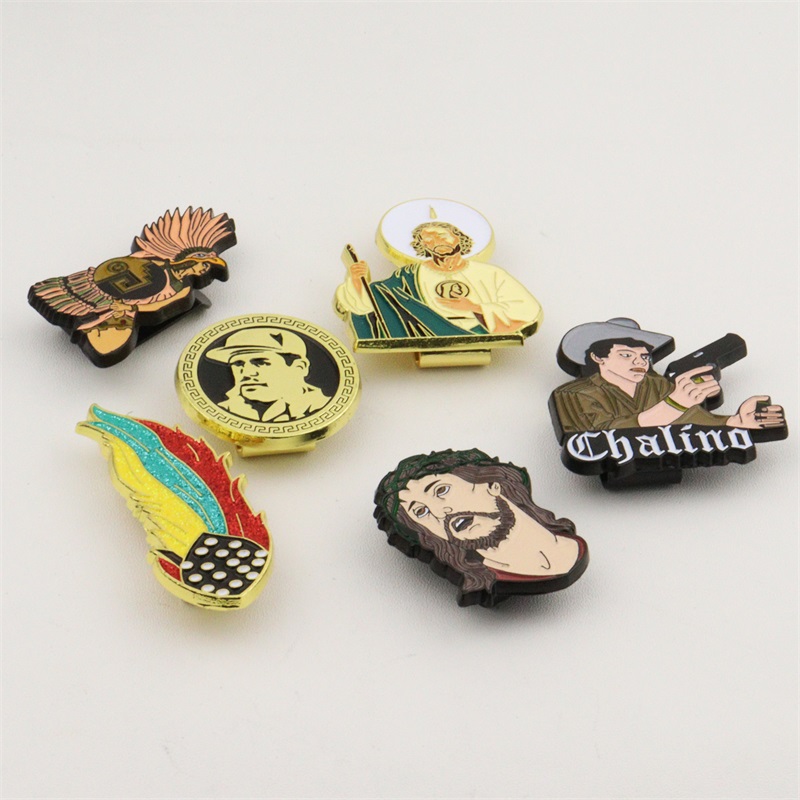 These metal hat clips feature vivid cultural/spiritual designs (iconic figures, symbols): the smooth enamel finish enhances detail, while the sturdy clip secures to caps—merging meaningful symbolism with durable, eye-catching style.