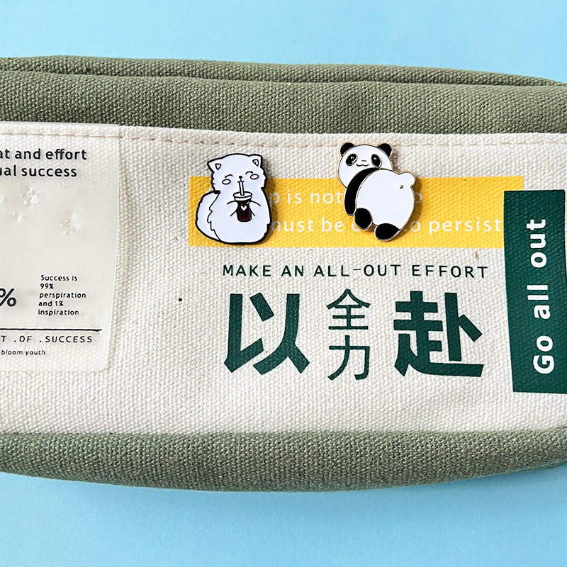 These 2 charming animal pins feature a cozy panda (curled up cutely) and a playful cat (sipping a drink with heart details)—glossy enamel amplifies their soft, adorable vibes. Ideal for adding sweet flair to bags/jackets; great for daily wear or showing off your cute animal collectibles.