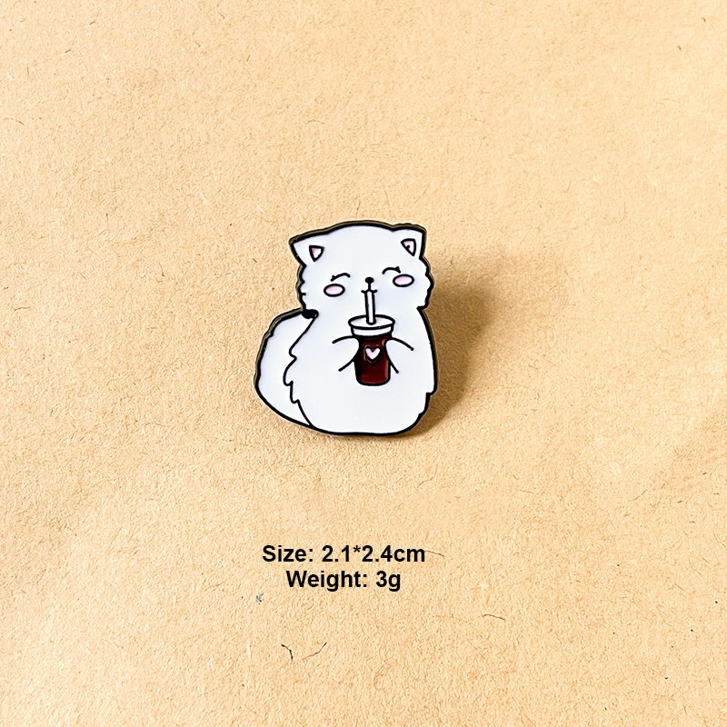 2 adorable pins (charming panda + drink-holding cat) — glossy enamel, playful details. Perfect for adding cute flair to bags/jackets; ideal for daily wear or animal-themed collectible decor.