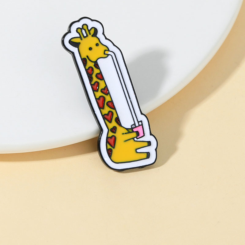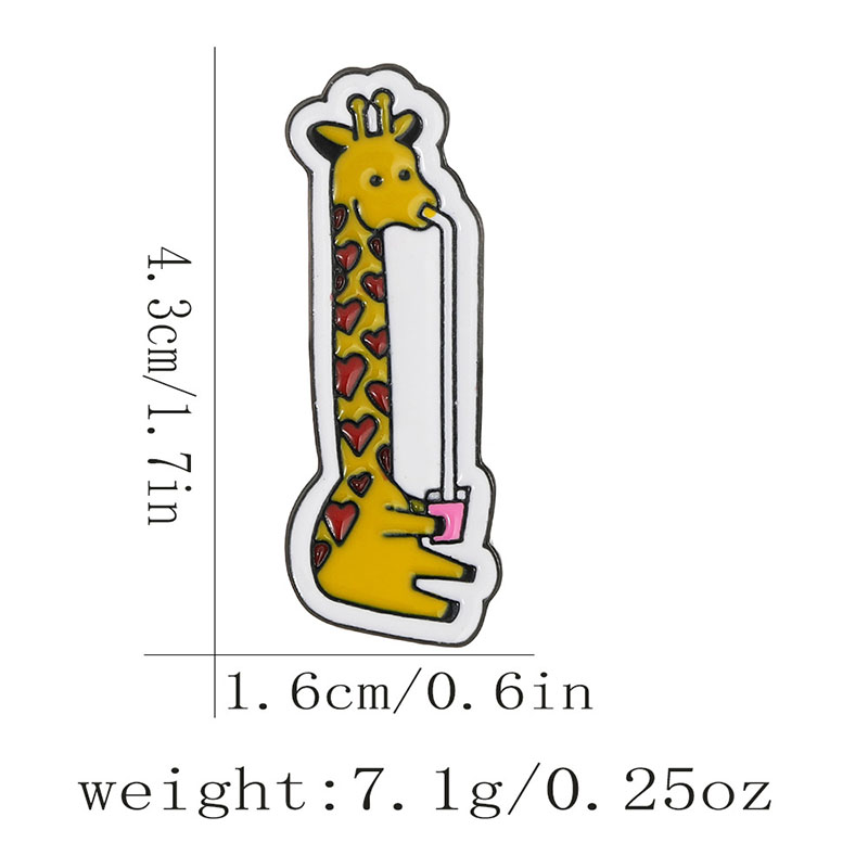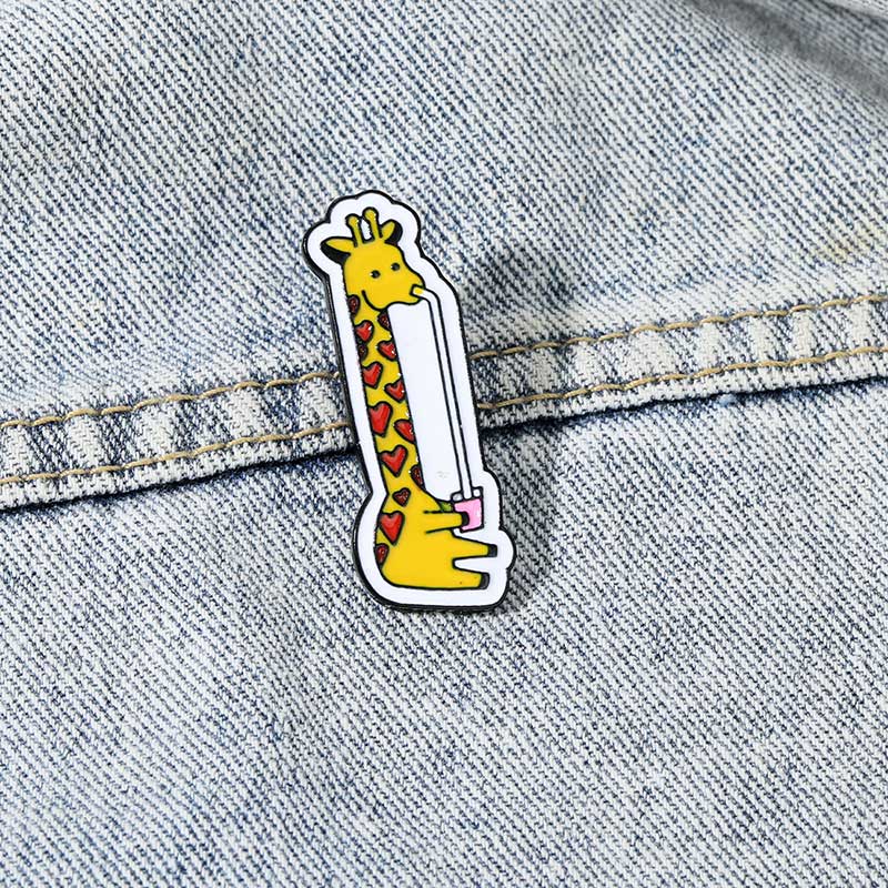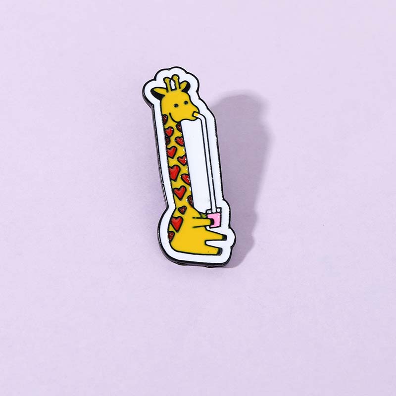 This playful giraffe pin features a long-necked cutie sipping via its neck (heart spots, pink cup)—quirky, adorable animal charm. For animal lovers, it adds cheerful flair to bags/jackets, ideal for daily styling or cute, whimsical animal-themed accessory decor.
