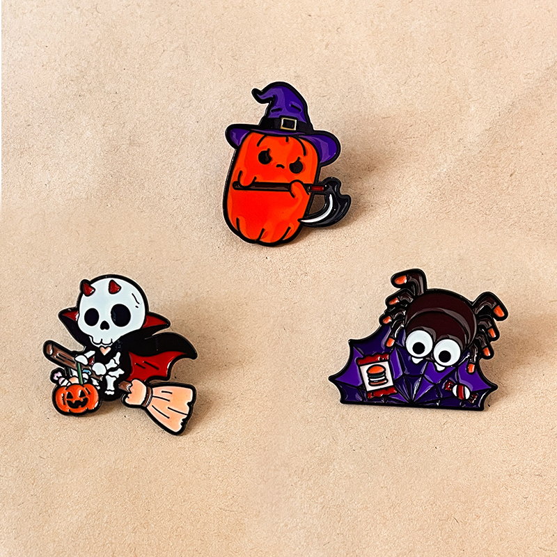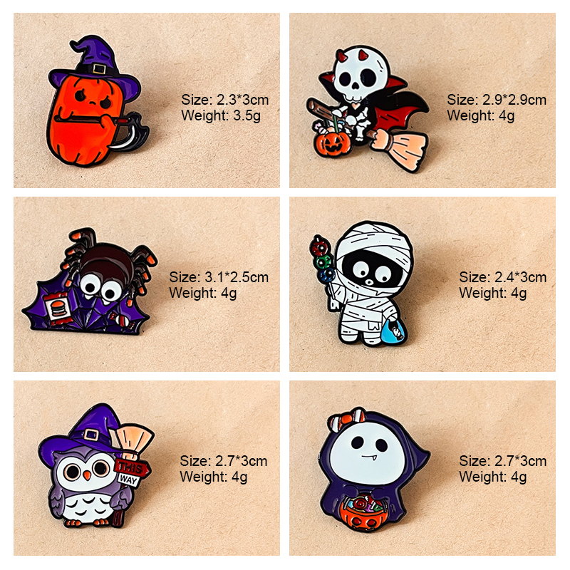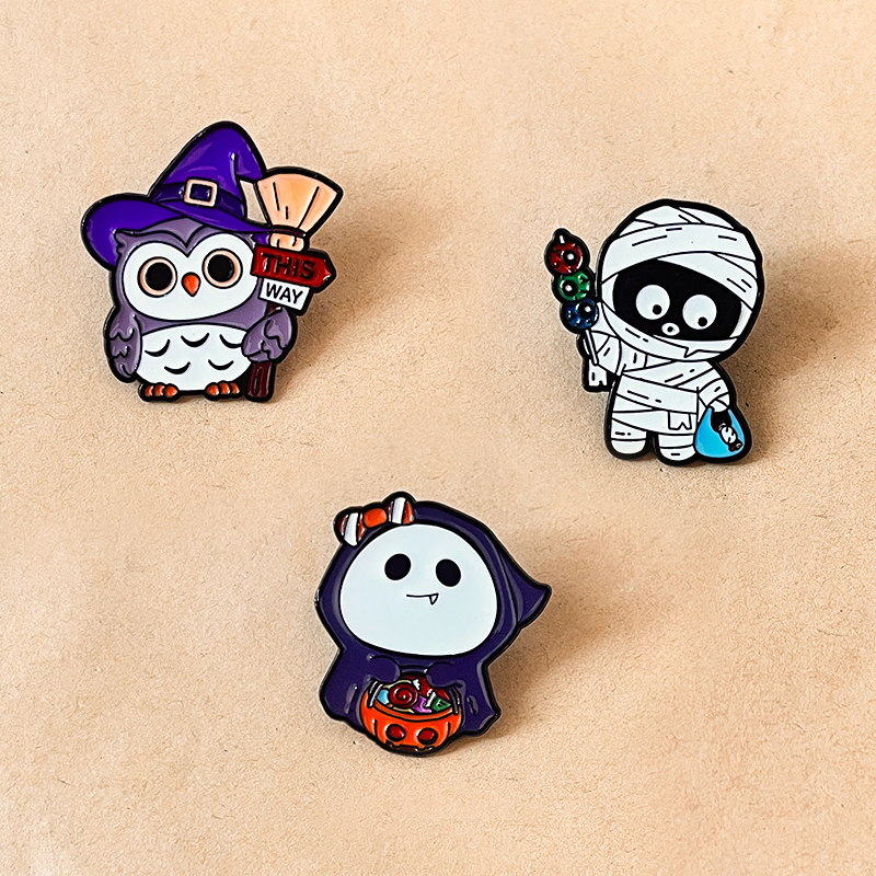 These Halloween pins have whimsical character silhouettes (rounded pumpkin, compact mummy, owl) with glossy, festive-colored enamel. They adorn backpacks, lapel collars, or trick-or-treat bags—perfect for adding playful spooky charm to Halloween outfits, or as quirky year-round accents for fans of festive decor.