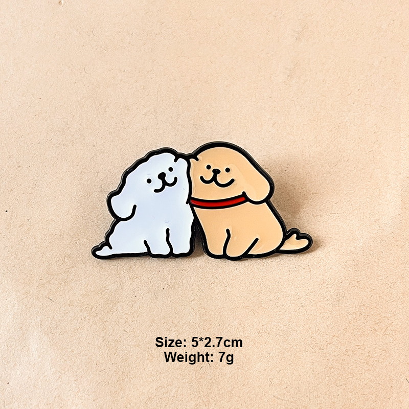 These cute puppy enamel pins feature soft, adorable puppy shapes—some holding red hearts, others cuddling closely—with gentle colors and sweet details. They decorate caps and bags, perfect for cute-style lovers to add warm, lovely charm to their accessories.