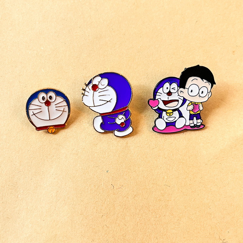 These 3 charming Doraemon pins (with Nobita, heart details) brim with nostalgic, playful charm—capturing the classic cartoon’s warmth. Ideal for fans to add cute style to bags/jackets; great for daily wear or showcasing your beloved Doraemon collectibles.