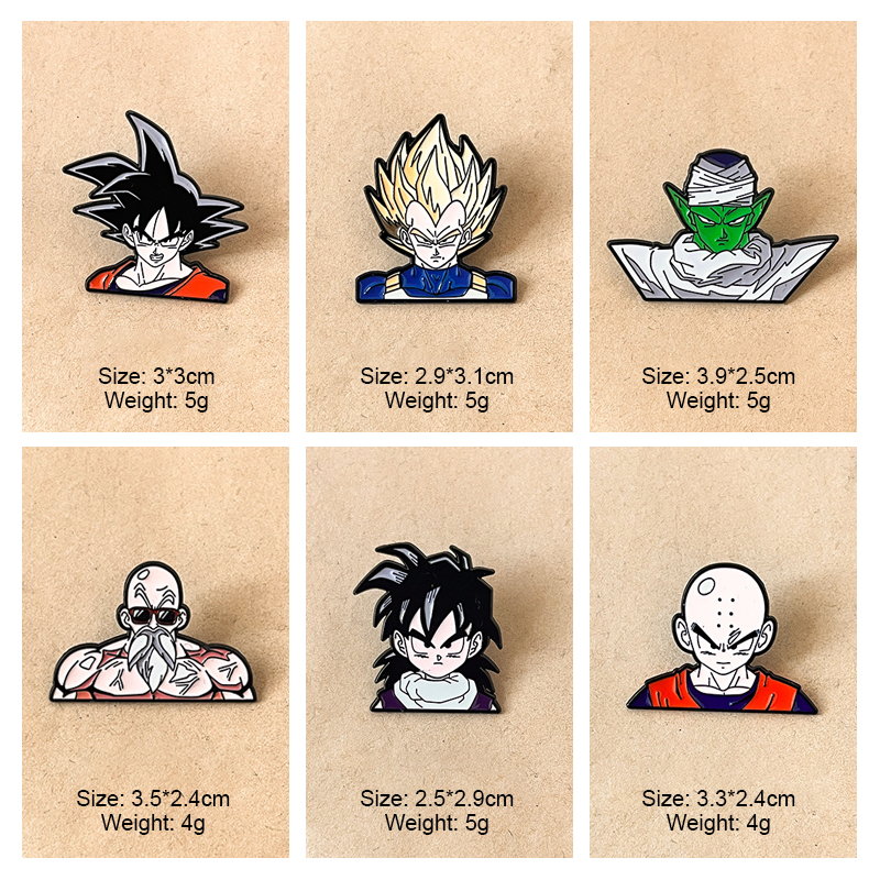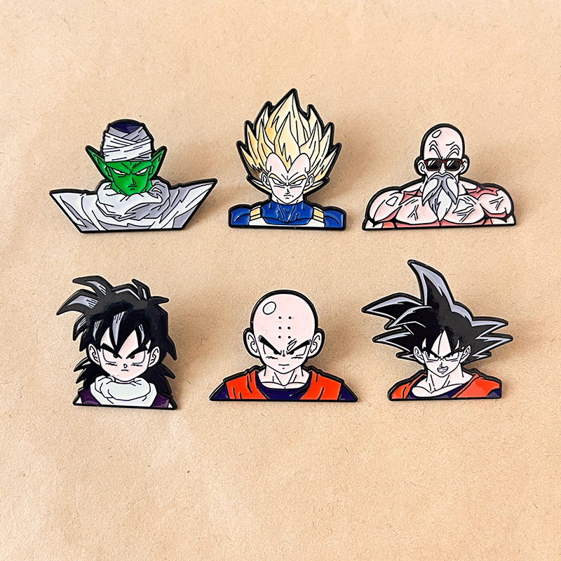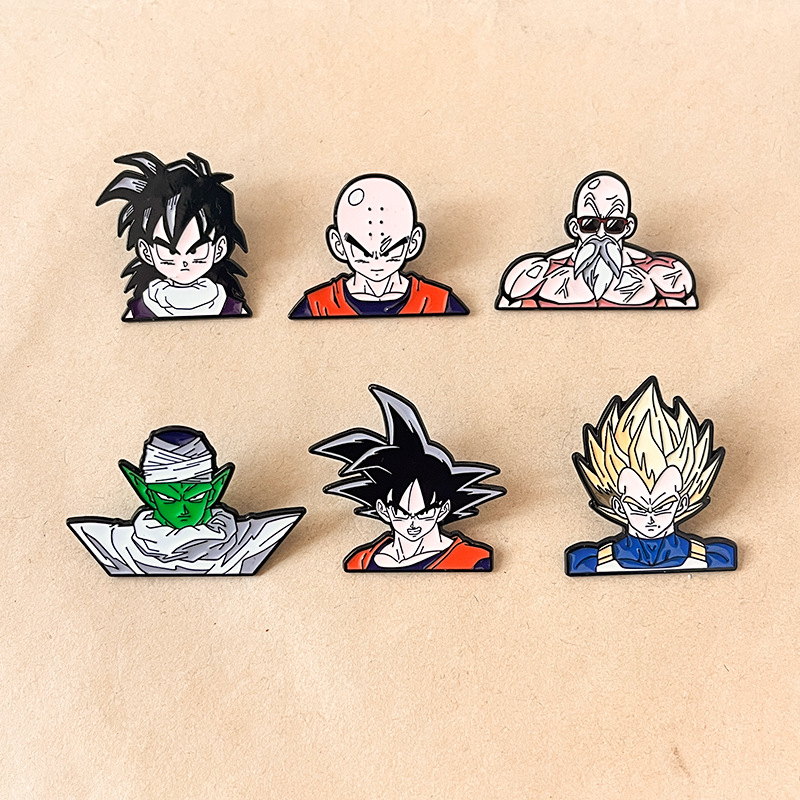 Features iconic Dragon Ball figures (Goku, Vegeta, Krillin, etc.) with vibrant, anime-style enamel. Ideal for fans to add nostalgic, fandom flair to jackets, bags, or hats—perfect for anime-themed daily styling.