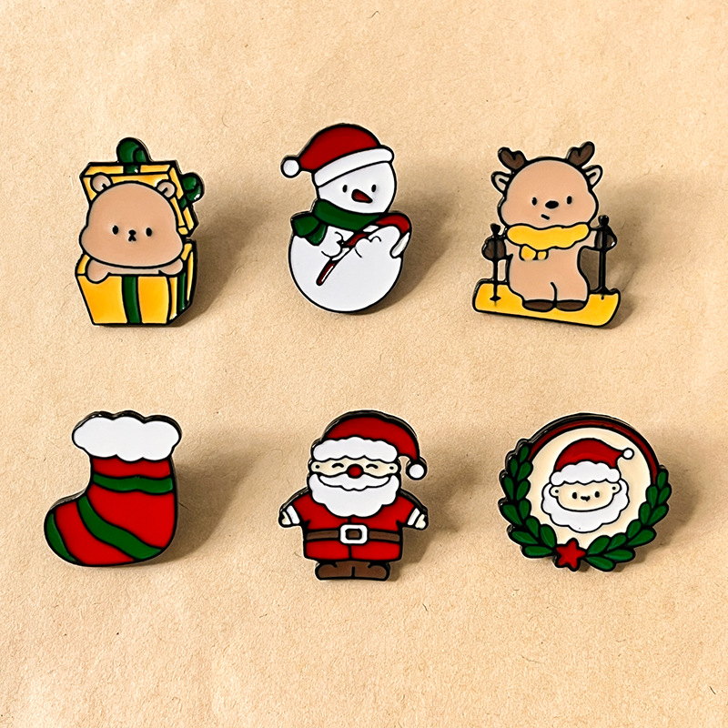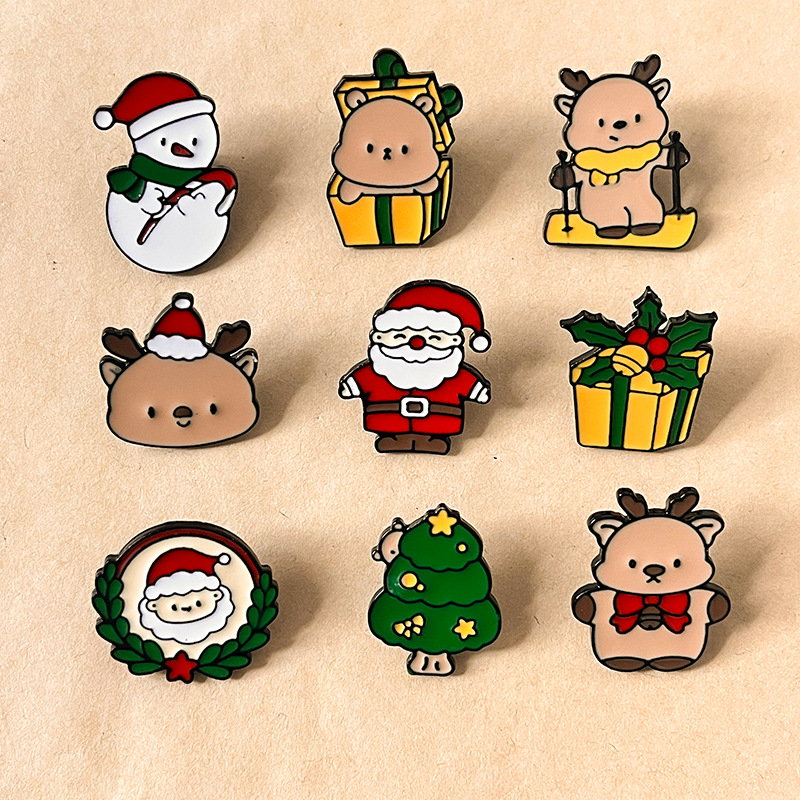 9 charming pins (snowman, gift-box bear, reindeer, Santa, wreath, tree) — vivid enamel, cozy festive vibes. Perfect for adding Christmas cheer to bags/jackets; ideal for holiday lovers’ cute collectibles