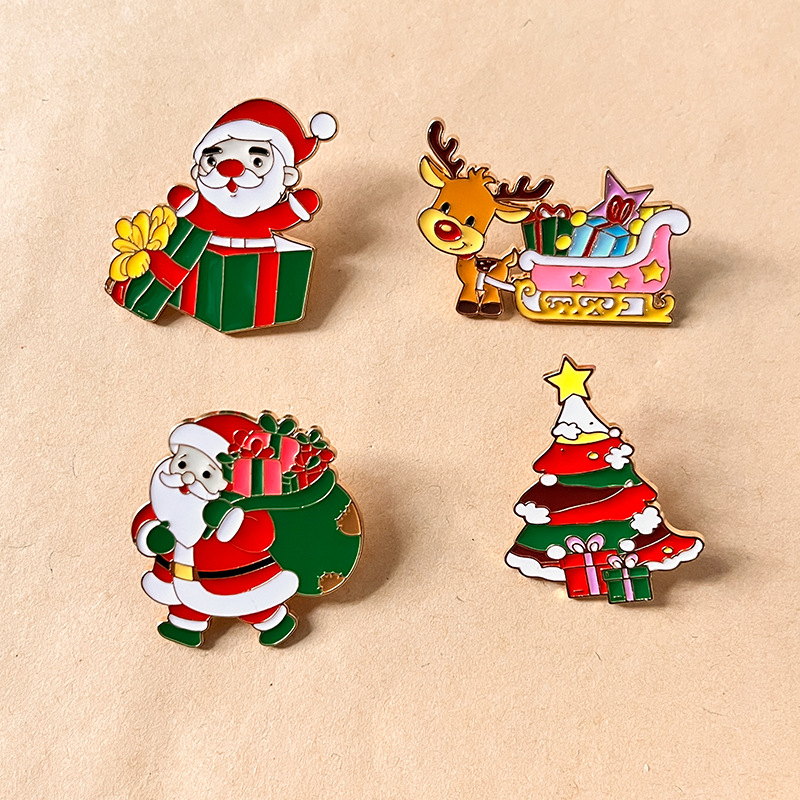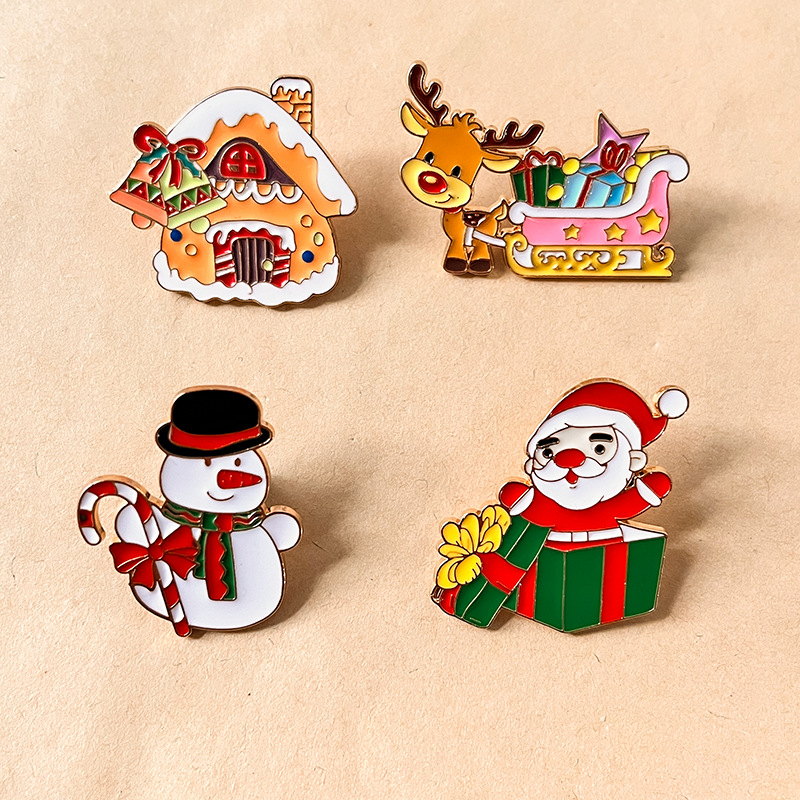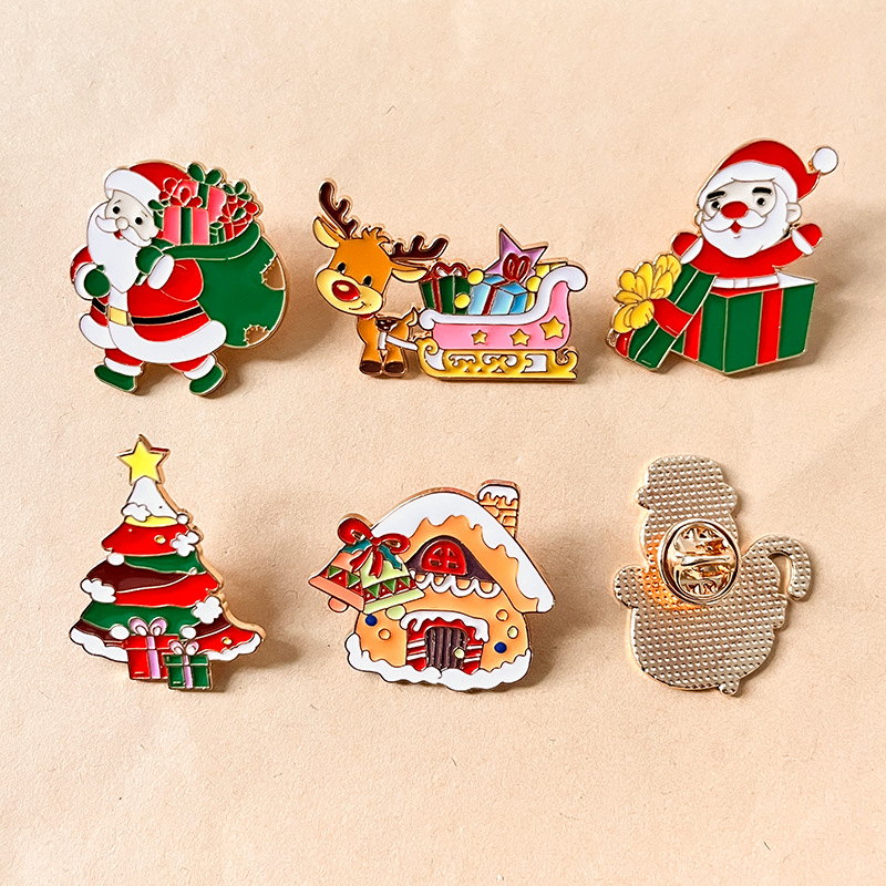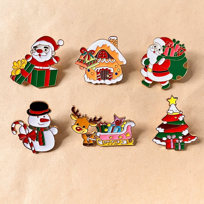 These pins come in varied holiday-themed shapes (Santa silhouettes, gingerbread house, snowman, etc.) with bright glossy enamel. They attach easily to winter coats, gift bags, or scarf corners—infusing seasonal charm into holiday outfits or serving as festive decor accents for small items.