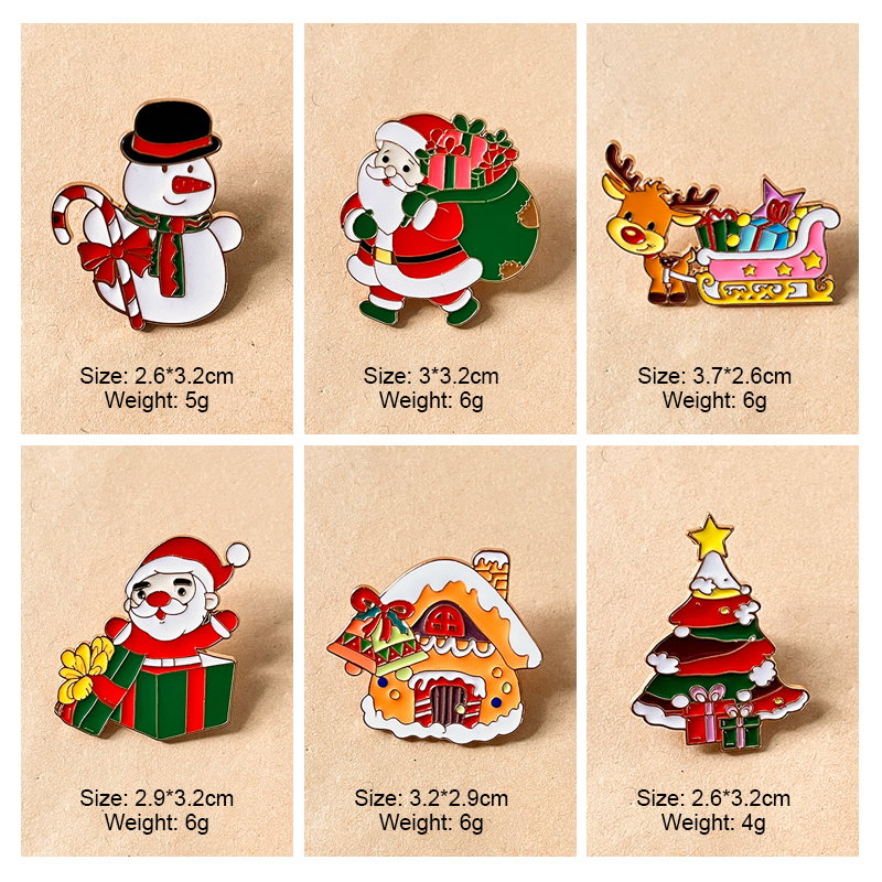 Features classic Christmas designs (Santa, gingerbread house, snowman, reindeer) with vibrant, glossy enamel. Ideal for adding festive charm to jackets, bags, or hats—perfect for holiday styling or seasonal decor accents.