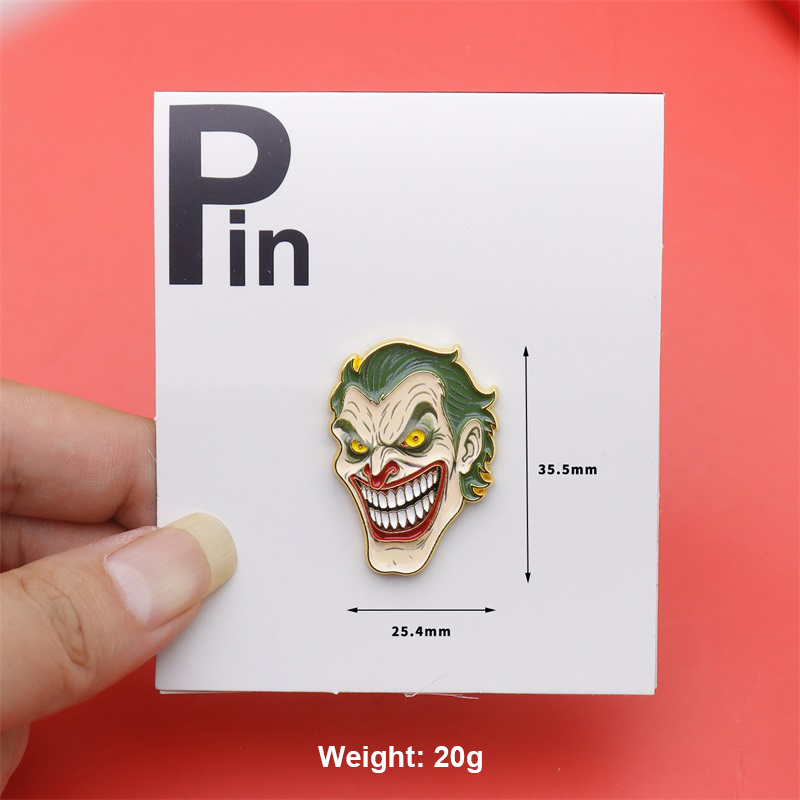 These pins boast distinct shapes: a 3D guitar-playing frog (with rhinestone-trimmed teeth) and a vivid Joker head silhouette, both rich in detail. Used to adorn caps or bags, they infuse outfits with playful/edgy flair—perfect for pop culture fans to elevate accessory uniqueness.