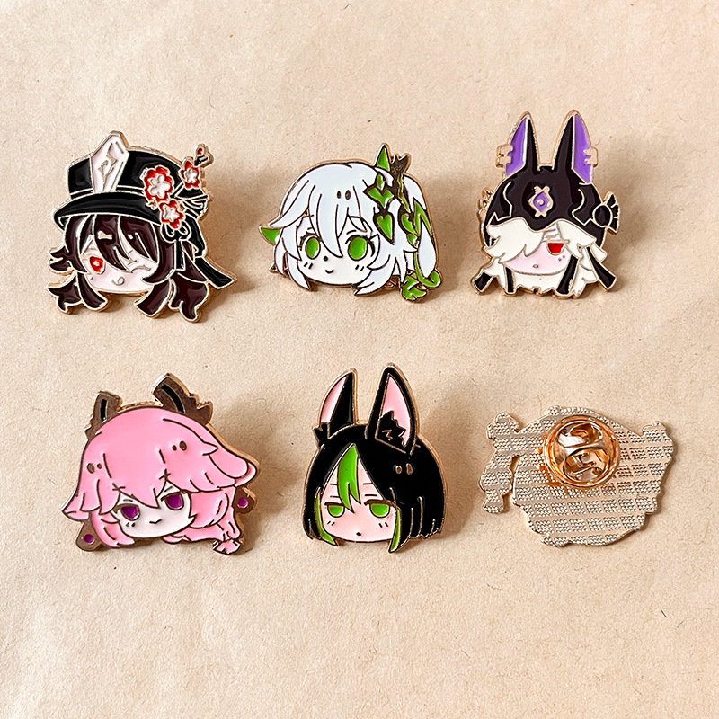 Features cute chibi designs of Genshin Impact characters (like Nahida, Yelan) with vivid enamel. Perfect for fans to add playful, nostalgic flair to bags, jackets, or lanyards—ideal for fandom styling or game-themed accessory accents.