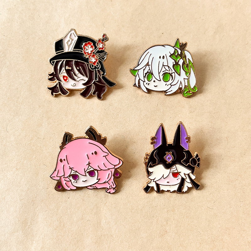 These Genshin Impact chibi pins showcase beloved characters (e.g., Nahida, Yelan) in cute, vivid enamel designs. Ideal for fans to infuse playful fandom charm into backpacks, outerwear, or lanyards—perfect for game-themed styling or collectible accessory decor.