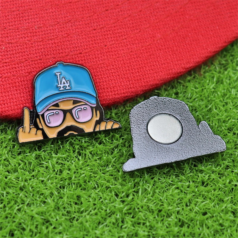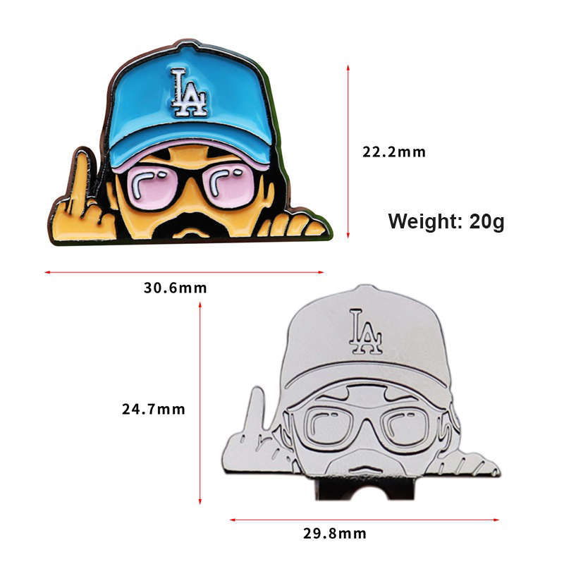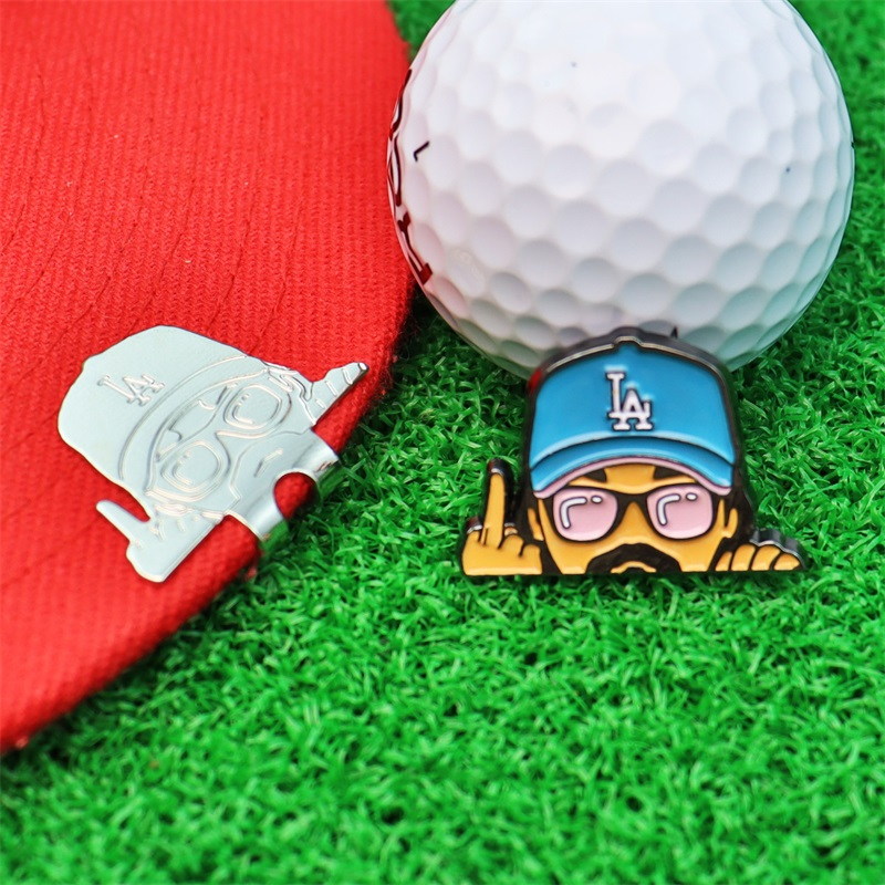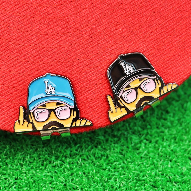 These hat clip markers feature character cutout shapes (with detailed facial features, LA cap accents, and playful hand gestures). Designs blend bold, glossy enamel colors (green, blue, black, brown) with a compact, clip-on structure—functional, eye-catching, and full of personality for golfers.