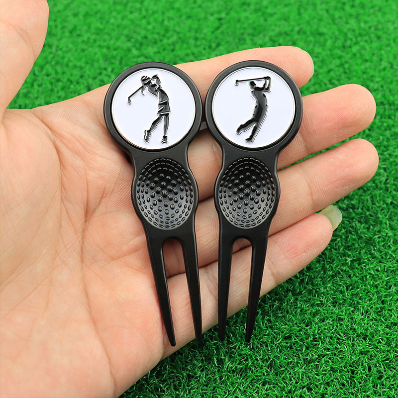 This 84mm (34g) divot tool features a stylish golf player silhouette (black finish) with a textured golf-ball grip area. Durable, functional for green repairs, and designed to mirror the sport’s spirit—perfect for golfers seeking gear that matches their passion.