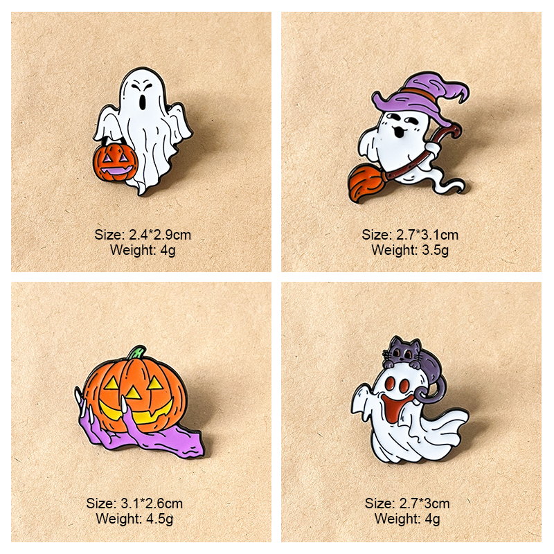 These Halloween enamel pins feature varied spooky-cute shapes (ghosts, pumpkins, tombstones) with quirky, playful designs. They decorate caps and bags, ideal for Halloween fans to infuse festive, whimsical-spooky charm into their accessories.