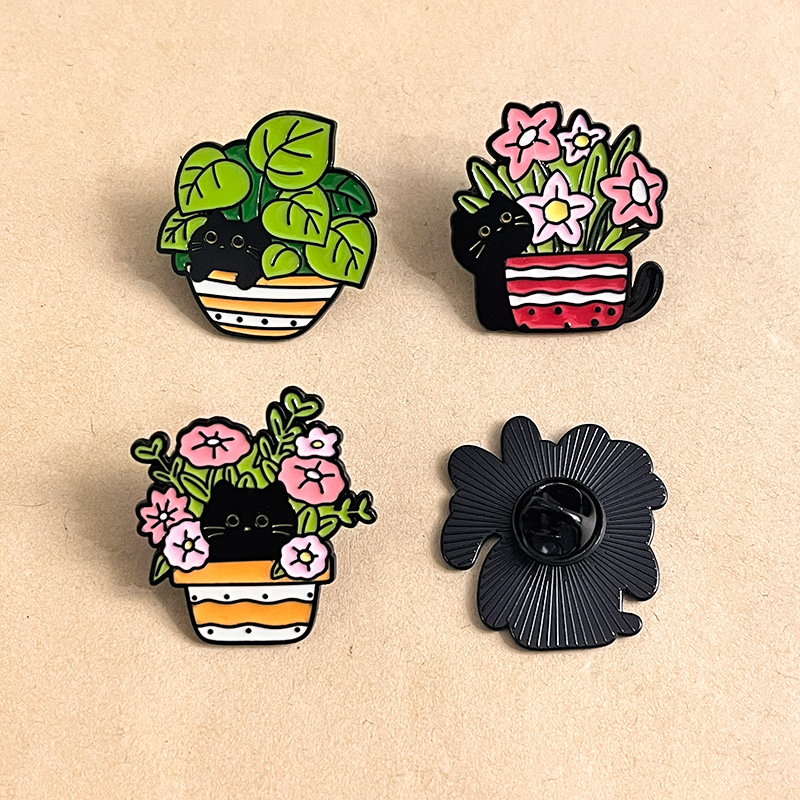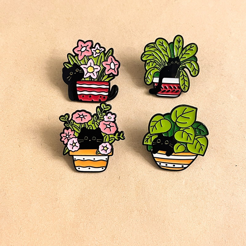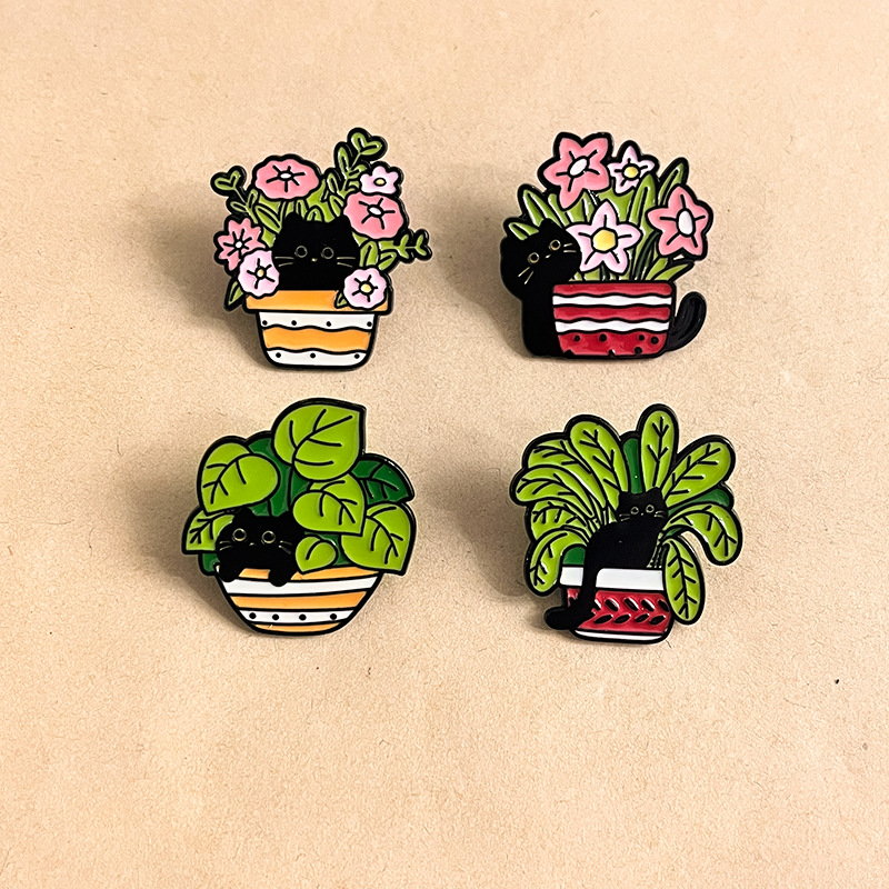Product : Hidden Black Cat Plant Pot Enamel Pin