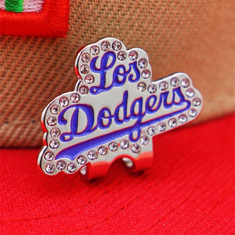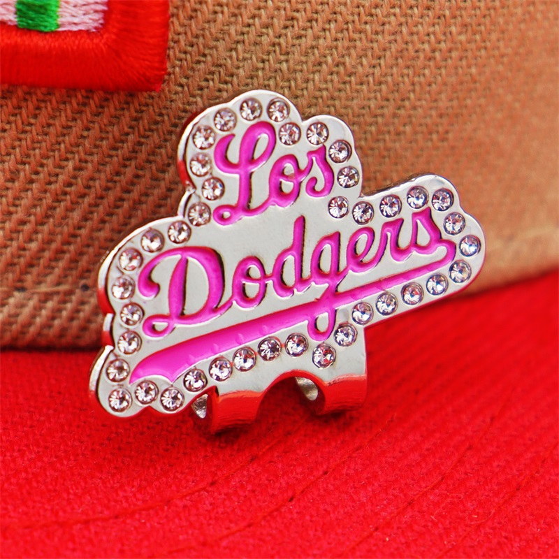 Sparkly Fan AccessoriesFeaturing “Los Dodgers” script encrusted with rhinestones, in blue/pink hues—sleek metal pins, ideal sparkly decor for fans to showcase team spirit on caps.