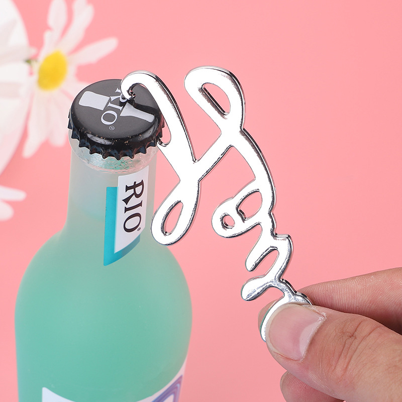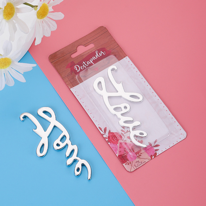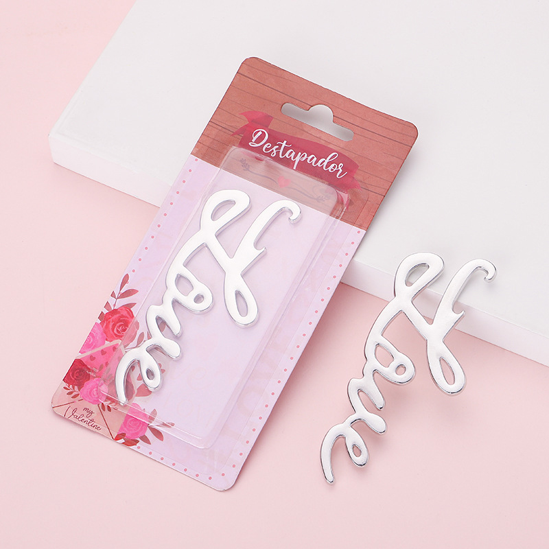 This 38g (16cm) opener is shaped like the word “love” in elegant cursive (polished silver finish). It pops caps smoothly, blending romantic charm with decorative flair—ideal for Valentine’s parties, weddings, or a heartfelt gift for love-themed decor lovers.