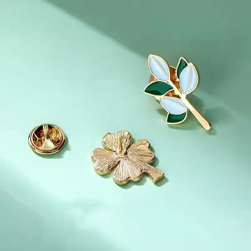 These glossy enamel pins (lucky clover + leaf) feature sleek gold trim: the clover symbolizes good fortune, while the leaf adds fresh nature flair. Perfect for elevating blazers, tote bags, or scarves—ideal for understated daily styling or subtle lucky-themed accessory decor.