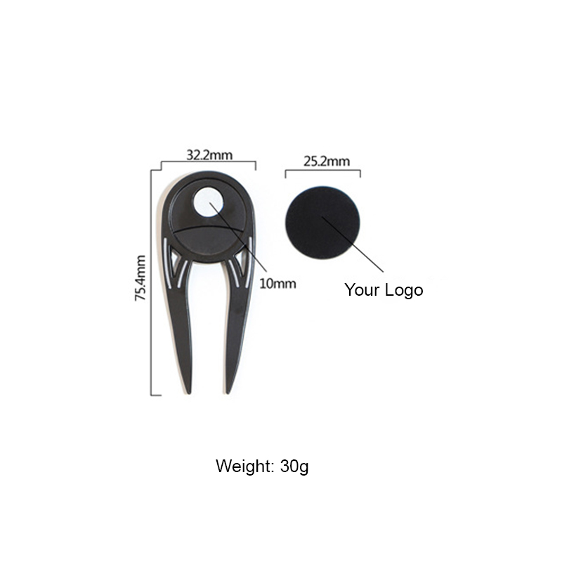 2-in-1 Green Repair & Ball Marker, Durable metal build, built-in magnet secures marker, sharp tines fix greens easily. Sleek, compact—essential on-course gear for golfers.