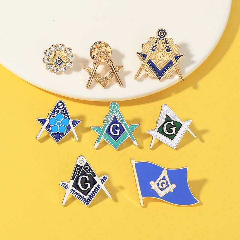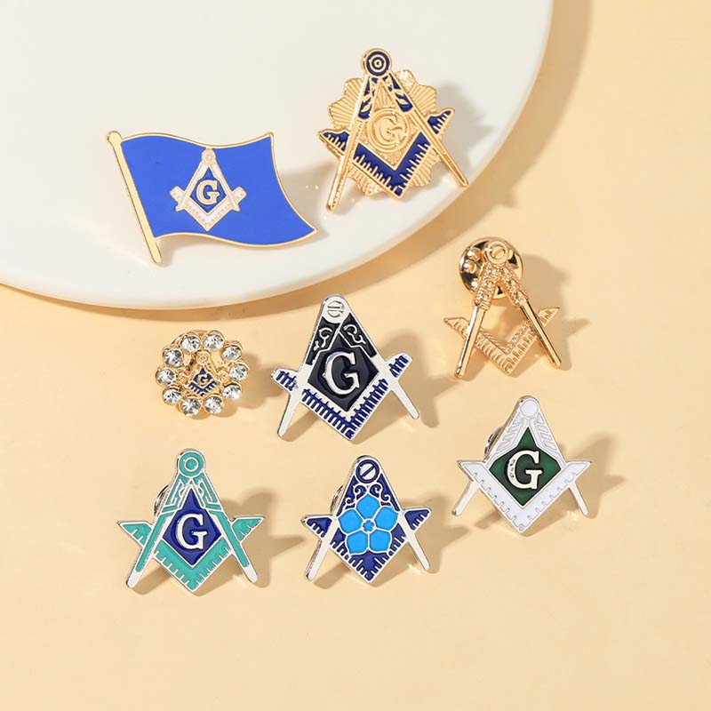 These 7 detailed Masonic pins feature iconic symbols (square/compass, "G" emblem, flag designs)—polished enamel and gold-tone accents highlight their fraternal significance. Ideal for Masons to show brotherhood pride; perfect for lodge events, regalia, or displaying fraternal collectibles.