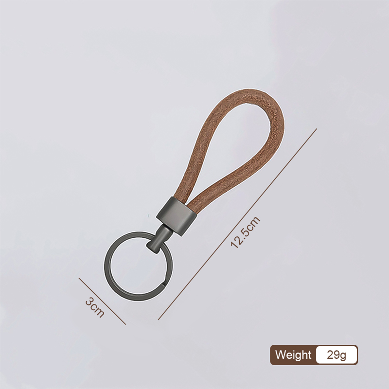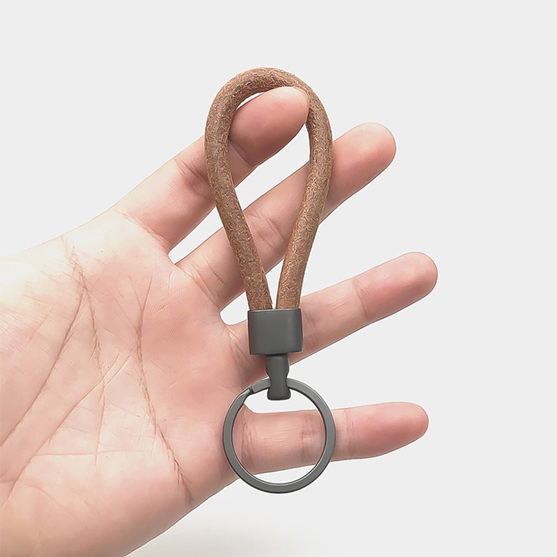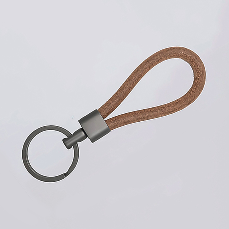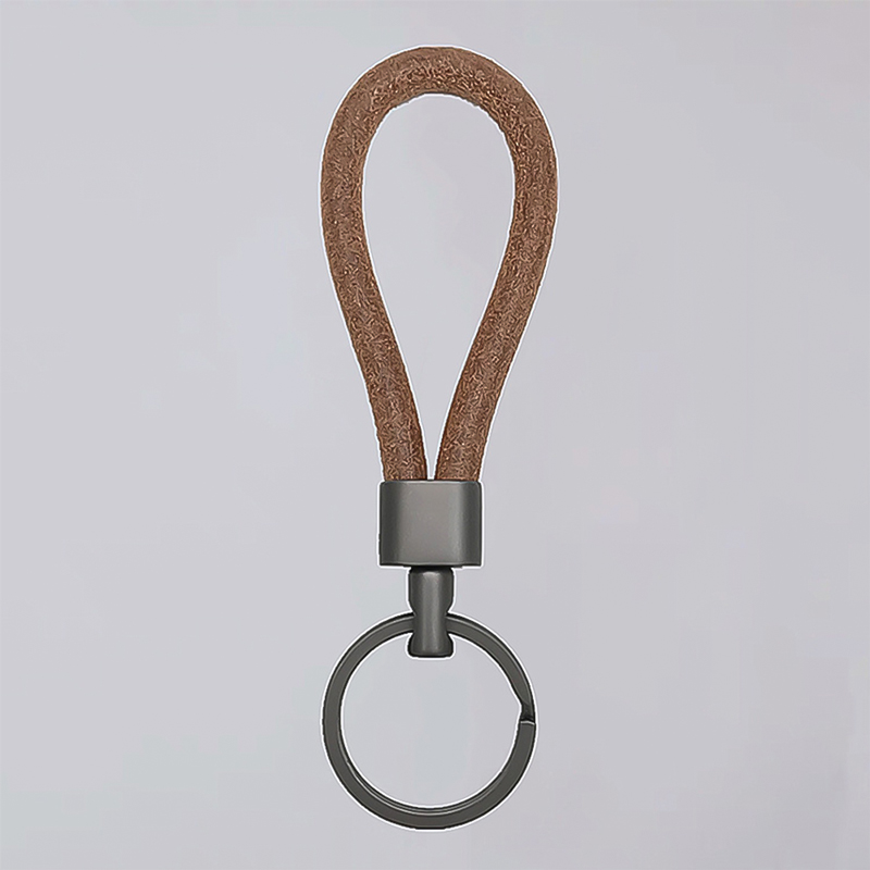 This keychain features a leather loop design with metal accents, showcasing a minimalist and sleek style. The combination of textured leather (brown and black) and metallic hardware creates a modern, understated aesthetic, ideal for men who prefer functional yet stylish accessories with a touch of sophistication.