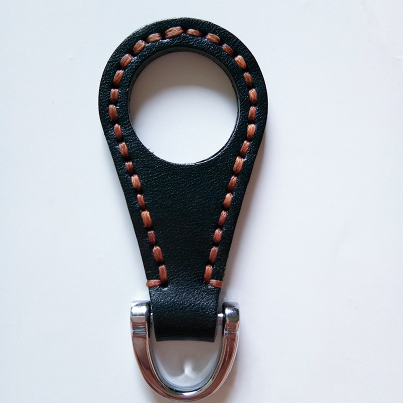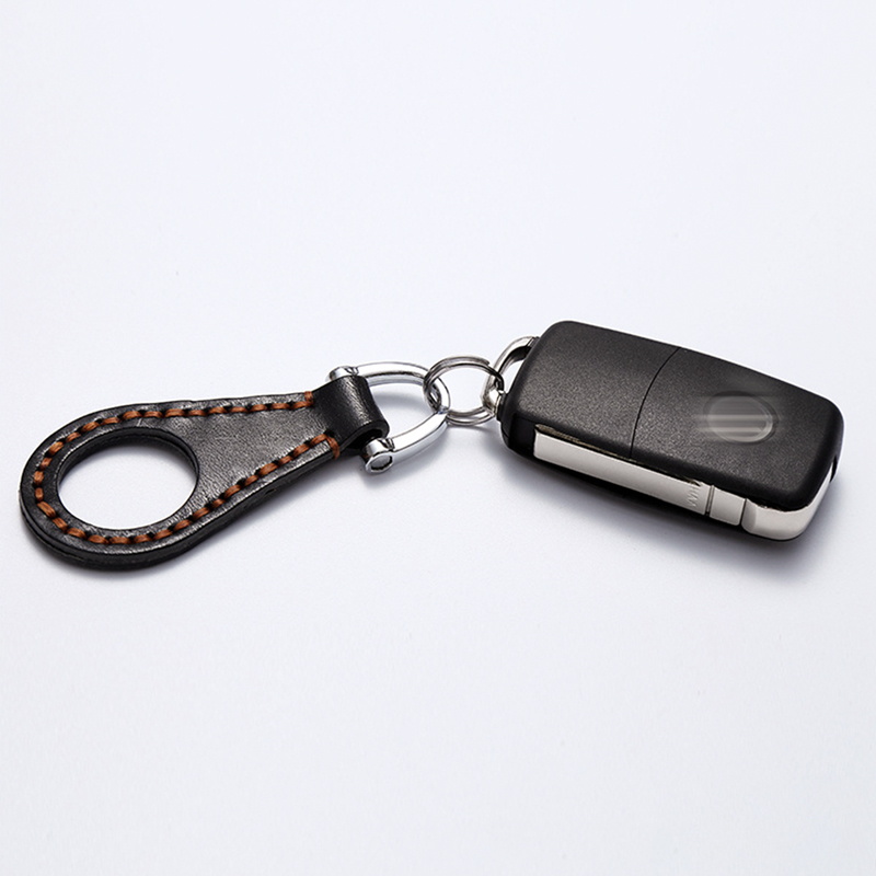 These leather metal keychains feature premium genuine leather in black and brown, with meticulous brown stitching and sturdy metal clasps, showcasing exquisite craftsmanship and durable materials for a stylish, long-lasting key organizing solution.