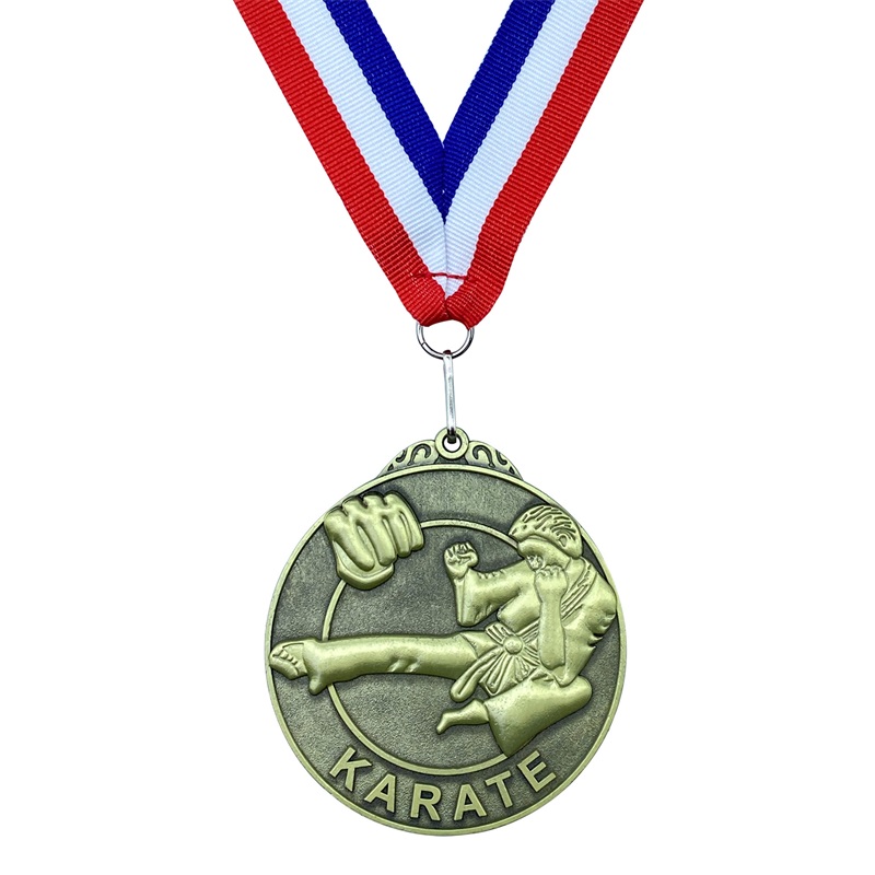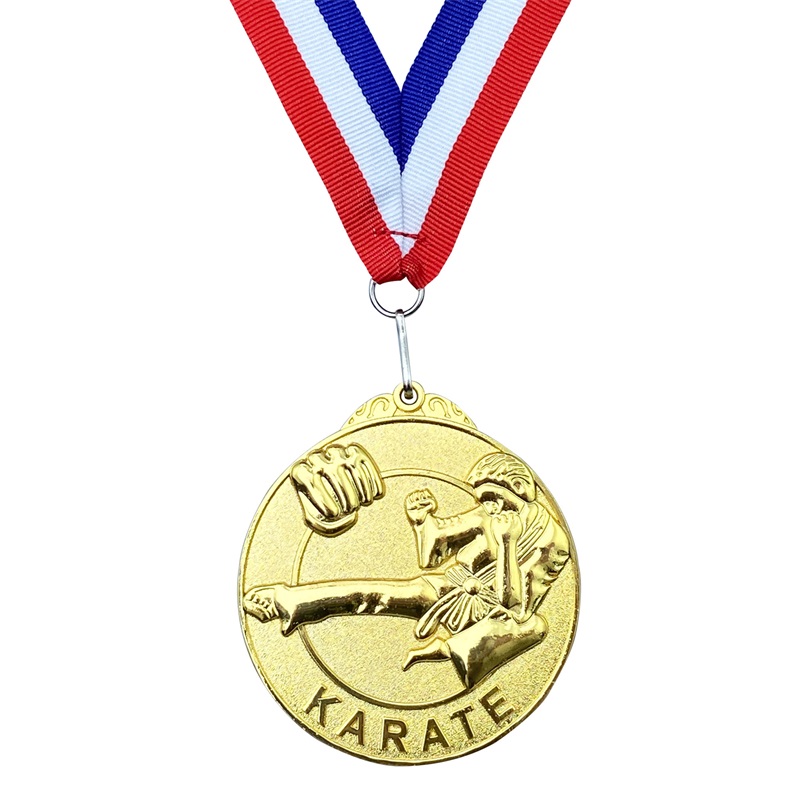 This gold/silver/red copper medal features dynamic karate-themed reliefs (punches, kicks, and gi details) that capture martial arts energy. Ideal for karate tournament divisions—from youth belt tests (recognizing skill progression) to adult black belt championships (honoring match winners)—it merges durable metal construction with sport-specific symbolism for meaningful competition recognition.