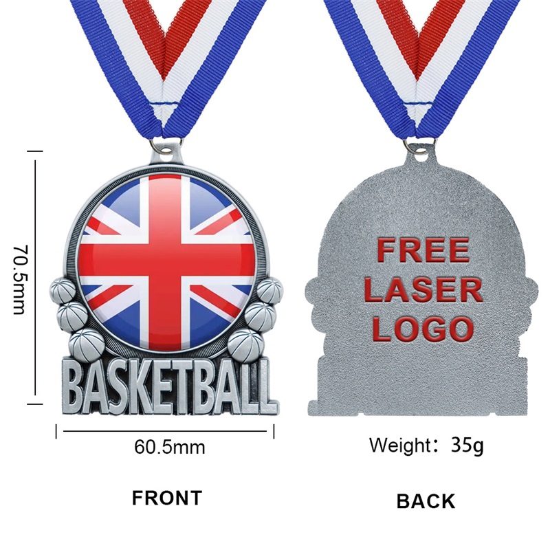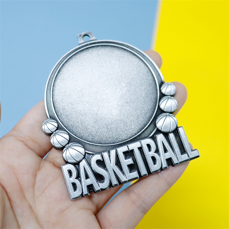 Crafted in antique gold/silver/red copper, this medal features 3D basketball motifs and a blank sticker panel (for custom logos). Ideal for basketball league finals, youth team MVPs, or sportsmanship honors, it merges sport-specific charm with personalized versatility for memorable court recognition.