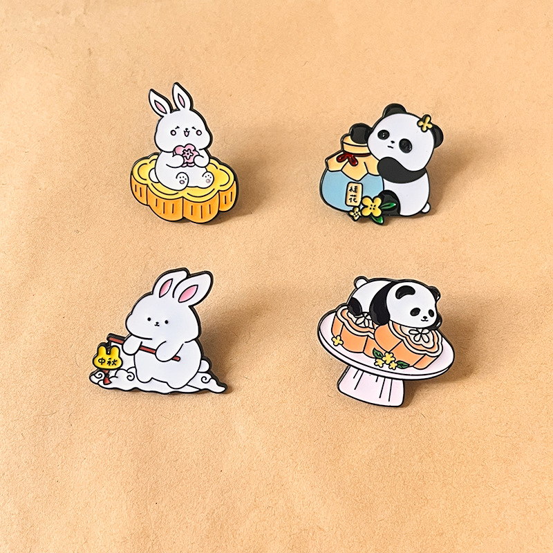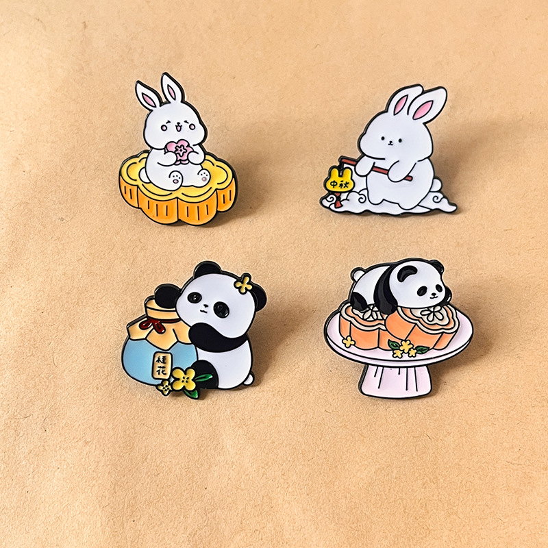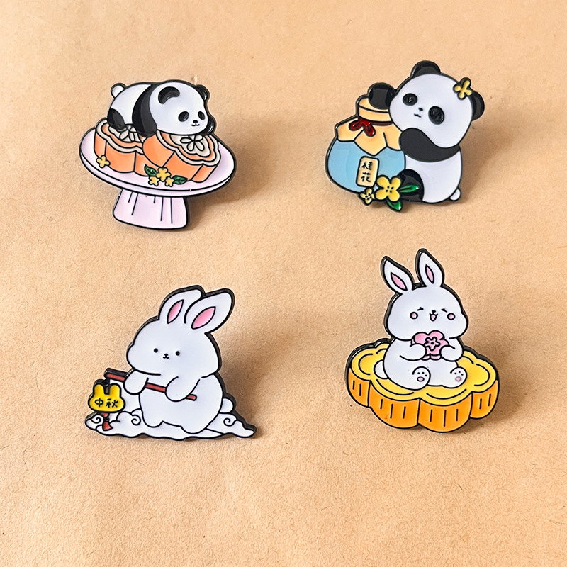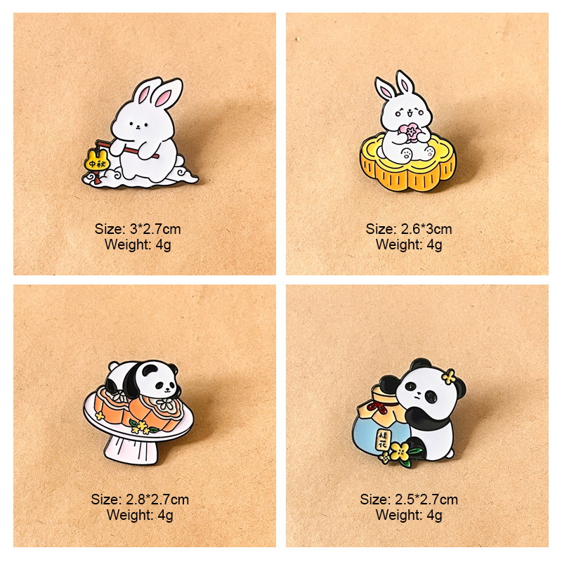 This Mid-Autumn pin set has 4 cute festive designs (panda with mooncake, rabbit with "Mid-Autumn" sign)—charming cultural flair. For festival lovers, it adds seasonal charm to bags/jackets, ideal for festive styling or infusing outfits with warm, traditional holiday personality.