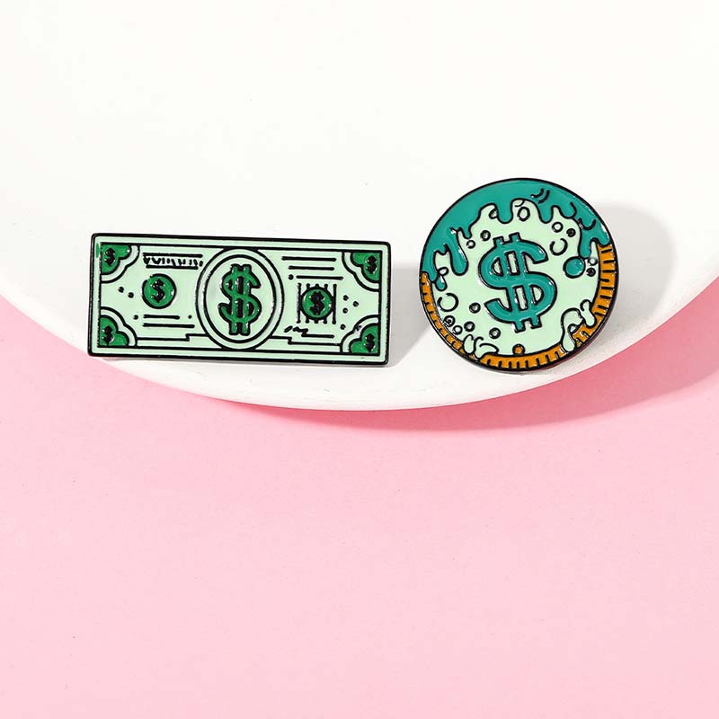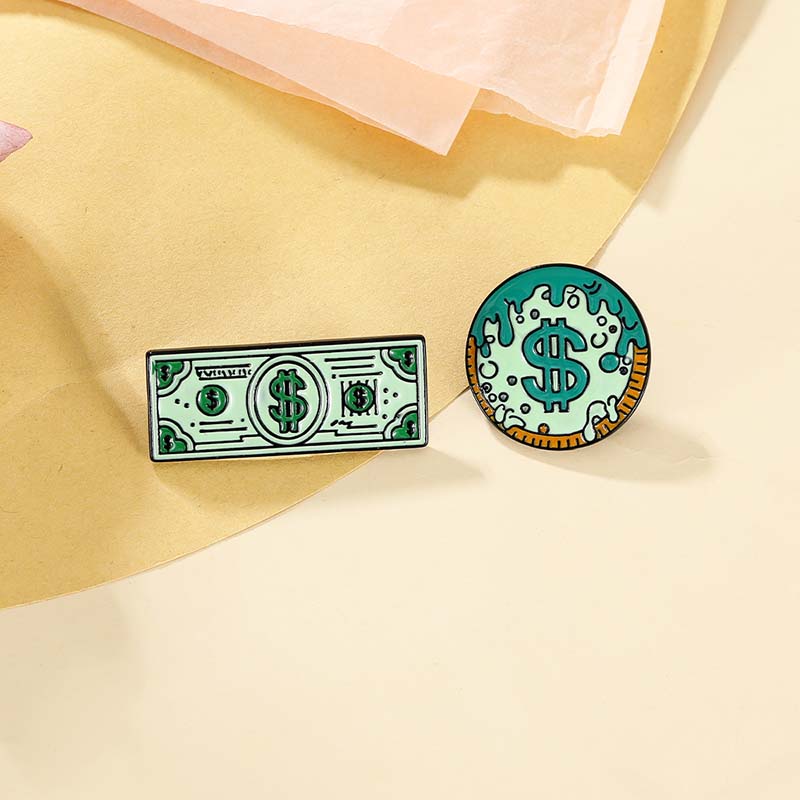 This money-themed pin set has 2 quirky designs (cash bill, dripping dollar coin)—vibrant, whimsical finance-inspired charm. For trend lovers, it adds fun flair to bags/jackets, ideal for daily styling or playful, eye-catching money-themed accessory decor.