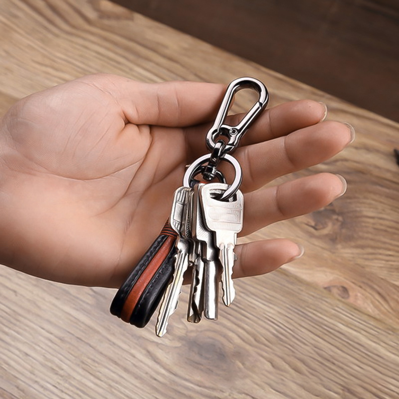 These leather keychains with metal hooks are ideal for men to attach to car keys or bags. Suitable for daily commutes, business trips, or as gifts, their stylish design fits both casual and formal scenarios, adding a touch of sophistication.