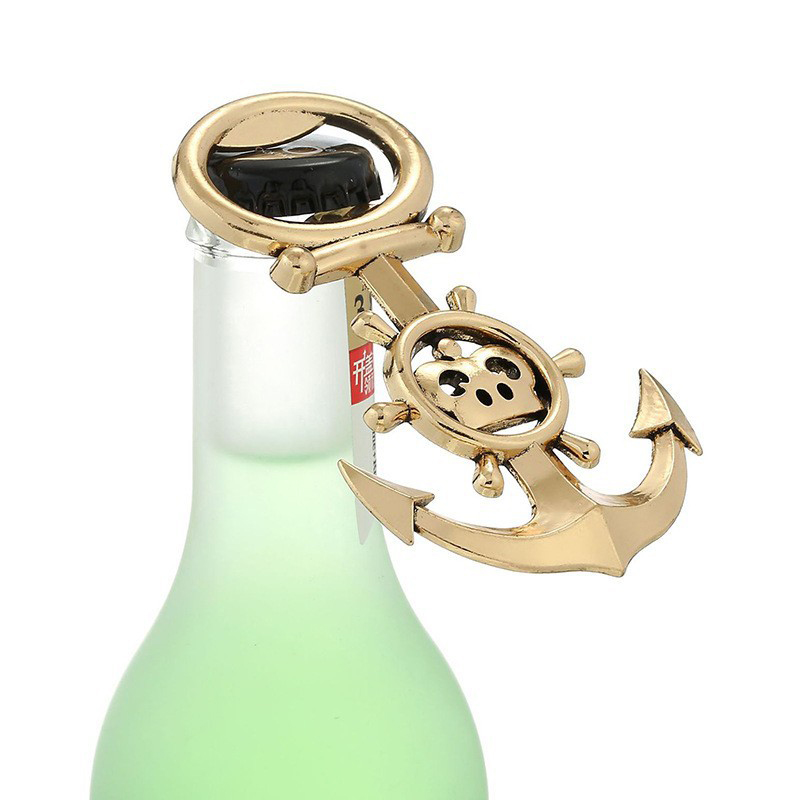 This 35-50g opener features a gold anchor + ship wheel design (with a skull detail, fitting pirate/nautical themes). It pops caps smoothly, blending maritime adventure charm with playful style—ideal for pirate parties, beach events, or a fun gift for sea-themed decor fans.