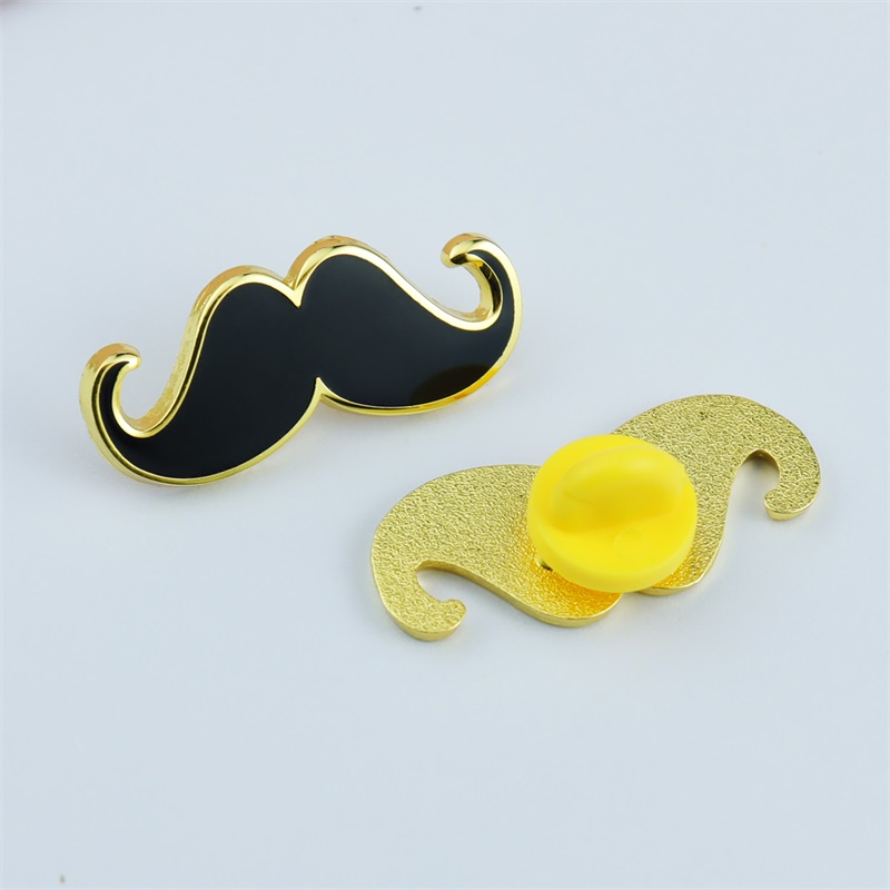 These pins feature diverse mustache silhouettes—black enamel paired with shiny gold borders, boasting curled lines and textured details. Used to adorn caps or bags, they infuse playful retro charm, ideal for upgrading accessories with whimsical style for lighthearted fashion lovers.